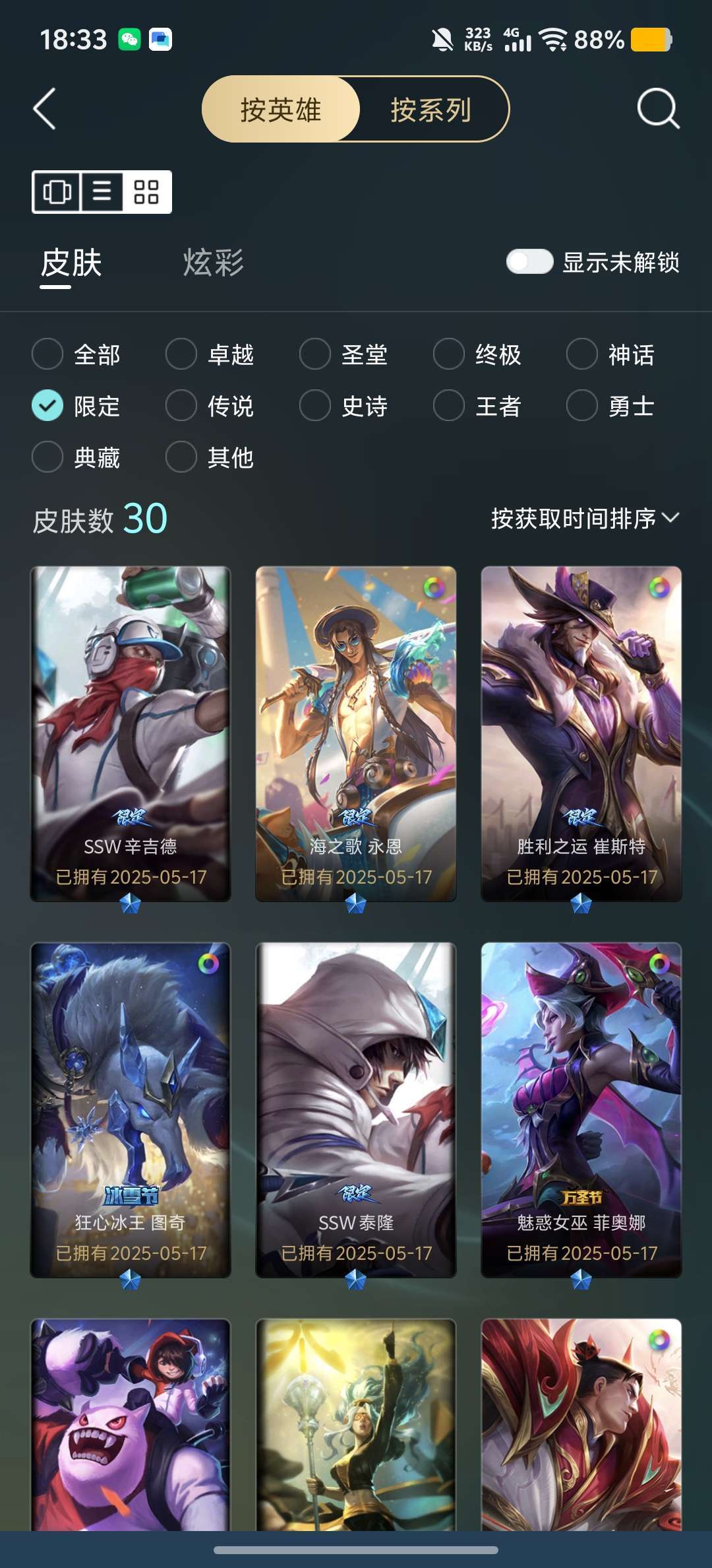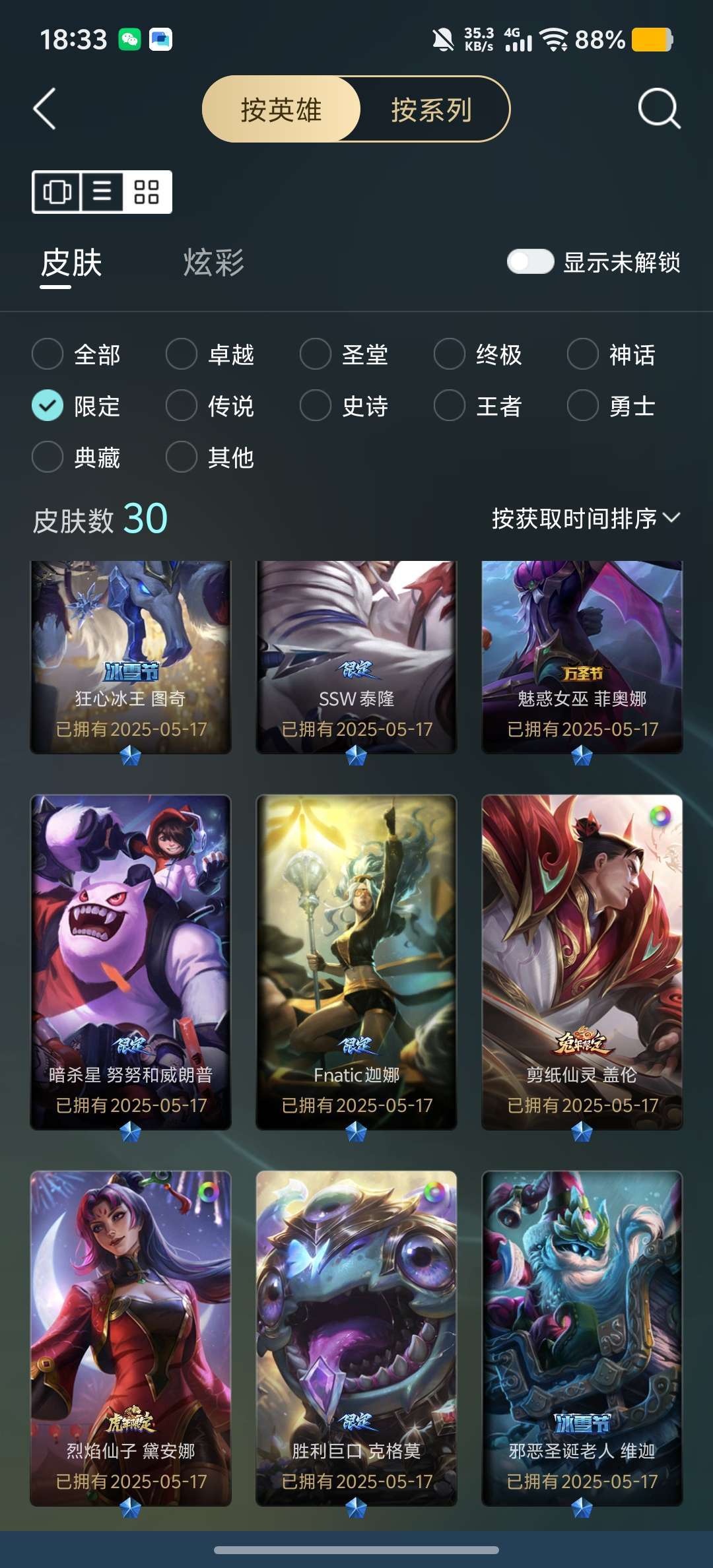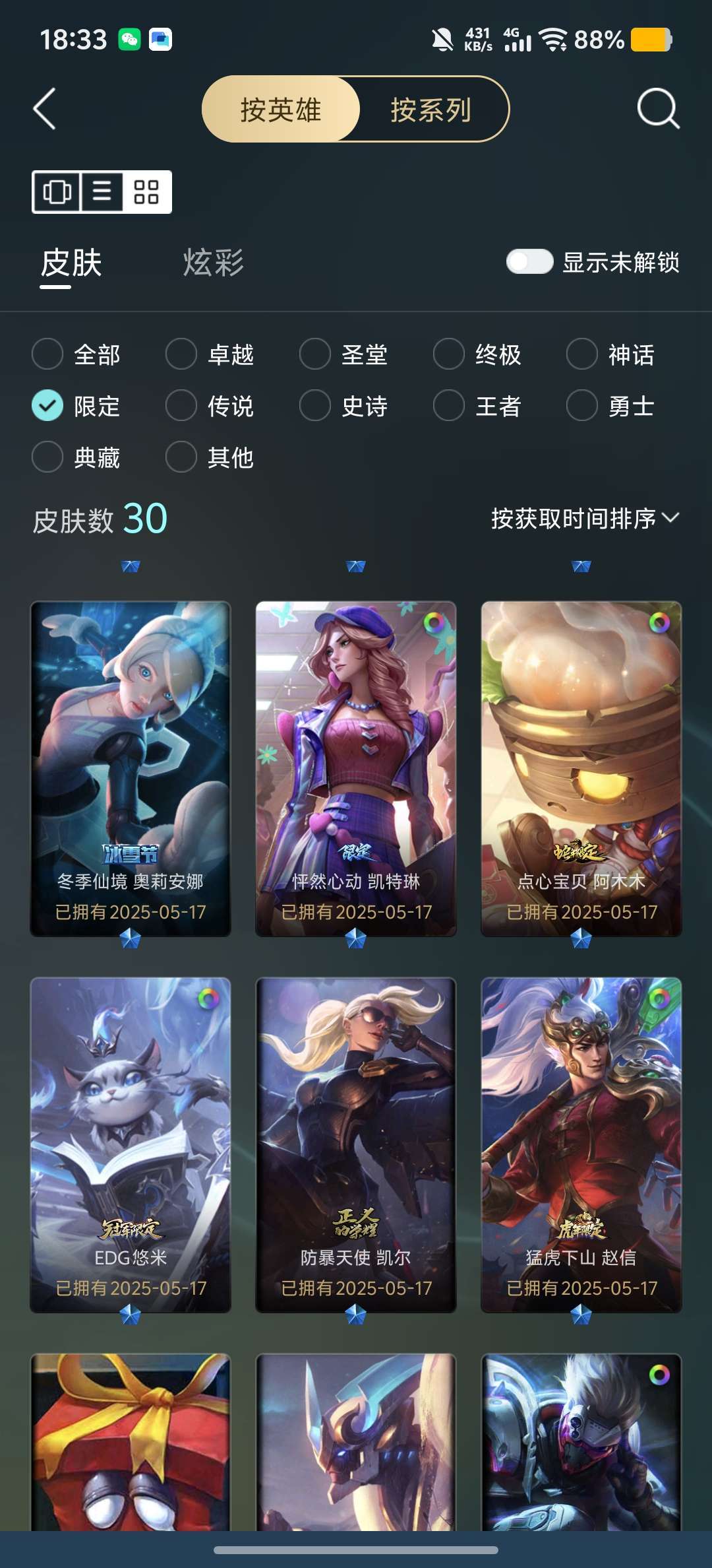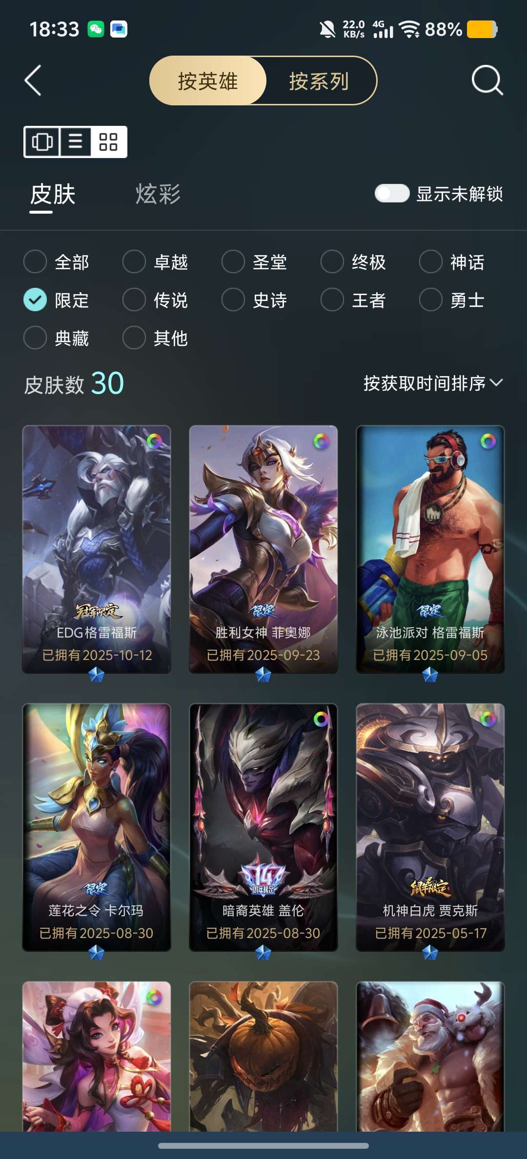 35传说30限定2终极7臻彩。泳池男枪,真实伤害艾克4炫彩,EDG男枪,剑圣源计划墨之影武者。