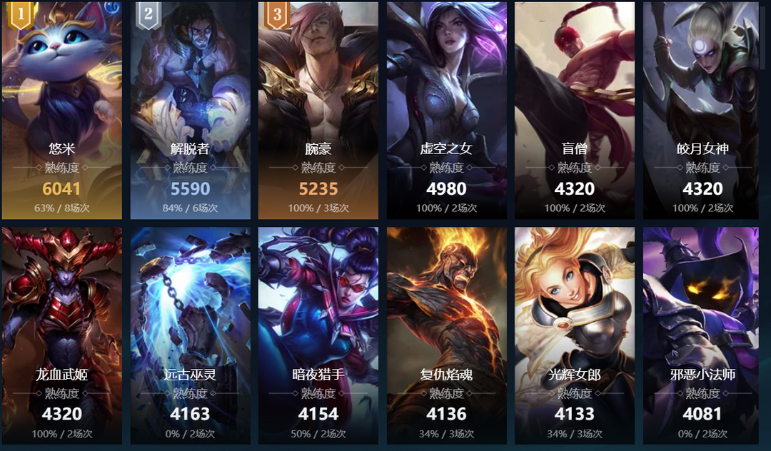 ❤赏金猎人;寒冰射手;探险家;皮城女警;黑暗之女;德邦总管;远古恐惧;无极剑圣;牛头酋长;亡灵战神;战争女神;众星之子;迅捷斥候;麦林炮手;祖安怒兽;雪原双子;蛮族之王;武器大师;堕落天使;时光守护者;痛苦之拥;虚空恐惧;殇之木乃伊;披甲龙龟;祖安狂人;琴瑟仙女;虚空行者;风暴之怒;天启者;瓦洛兰之盾;邪恶小法师;巨魔之王;诺克萨斯统领;蒸汽机器人;熔岩巨兽;德玛西亚皇子;齐天大圣;复仇焰魂;盲僧;暗夜猎手;沙漠死神;狂野女猎手;兽灵行者;圣锤之毅;不屈之枪;铁铠冥魂;德玛西亚之力;曙光女神;刀锋之影;放逐之刃;暮光之眼;光辉女郎;远古巫灵;九尾妖狐;潮汐海灵;不灭狂雷;北地之怒;诺克萨斯之手;皎月女神;虚空之女;星籁歌姬;疾风剑豪;戏命师;祖安花火;圣枪游侠;影流之主;皮城执法官;魔法猫咪;沙漠玫瑰;魂锁典狱长;解脱者;愁云使者;封魔剑魂;腕豪