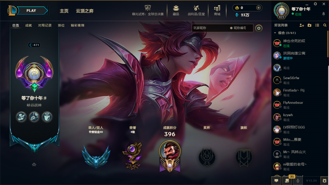 段位:471级 当前赛季无