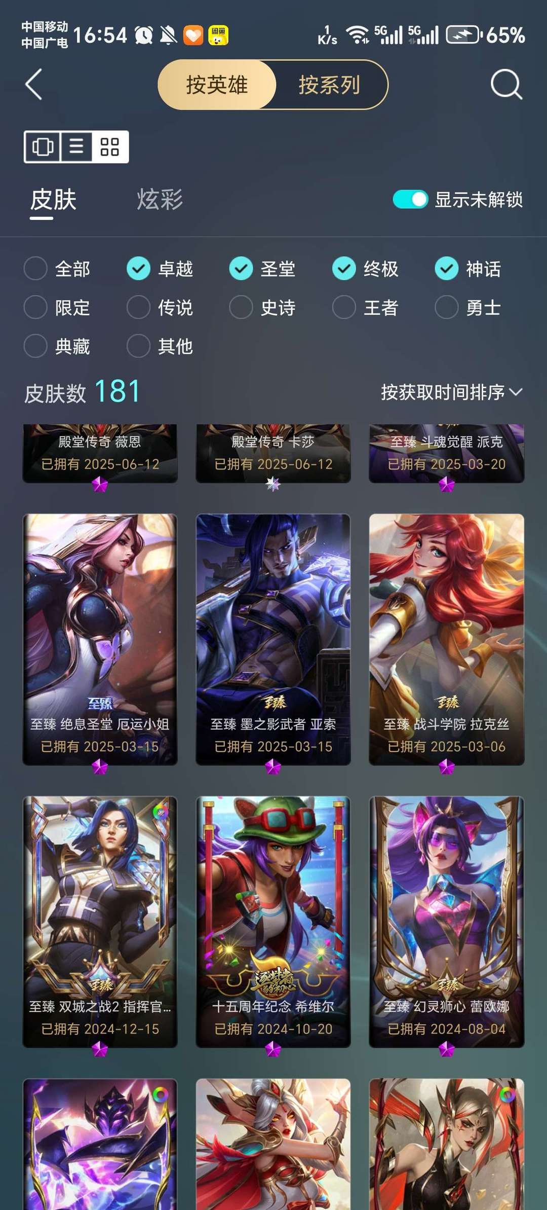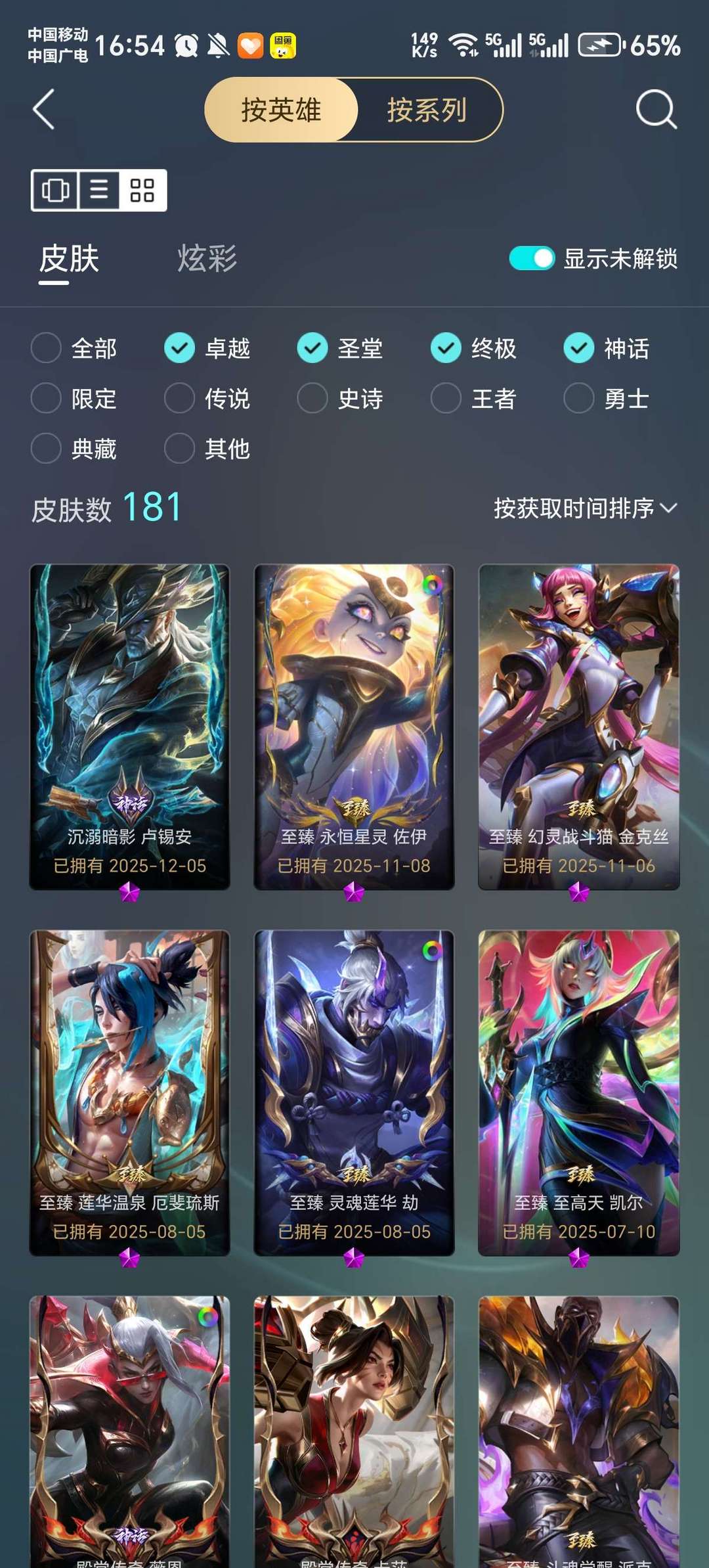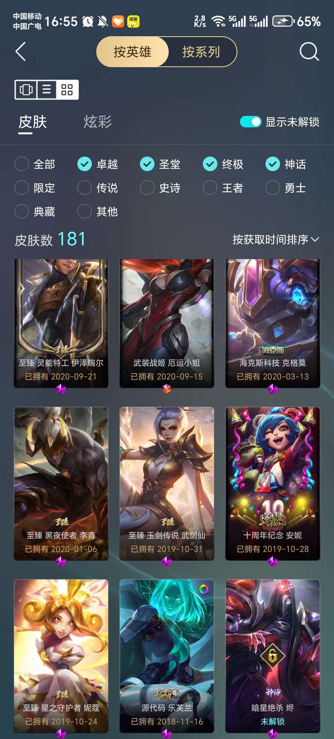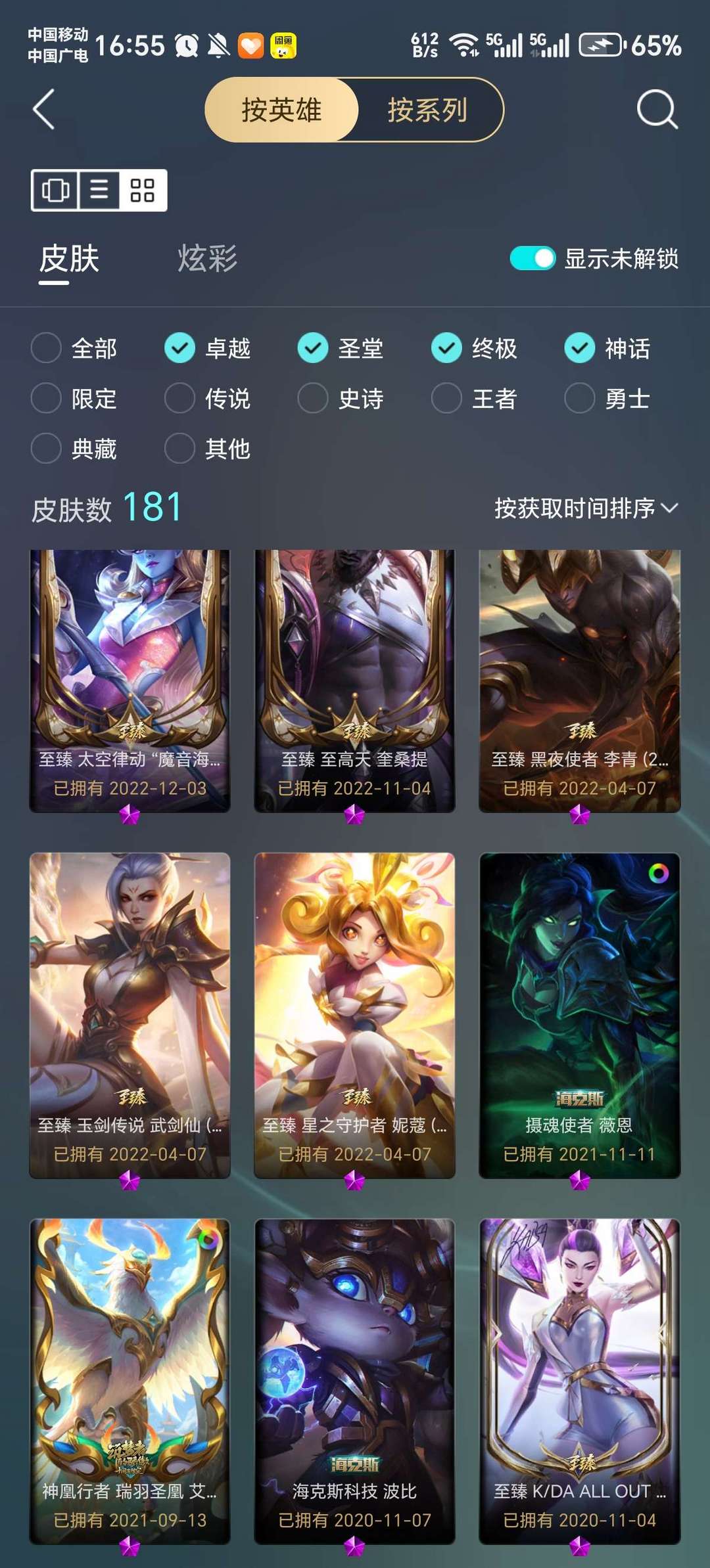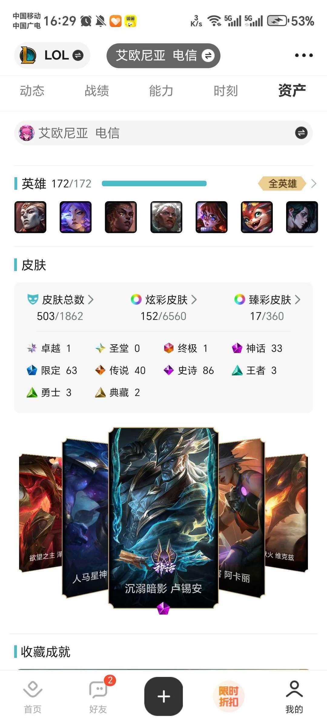 网一号,adc皮肤偏多,女英雄皮肤较多,特效皮肤为主,英雄基本都带有一两个皮肤,至臻如图还行