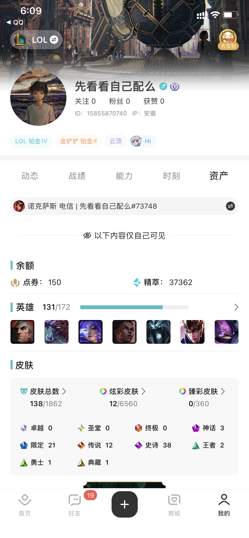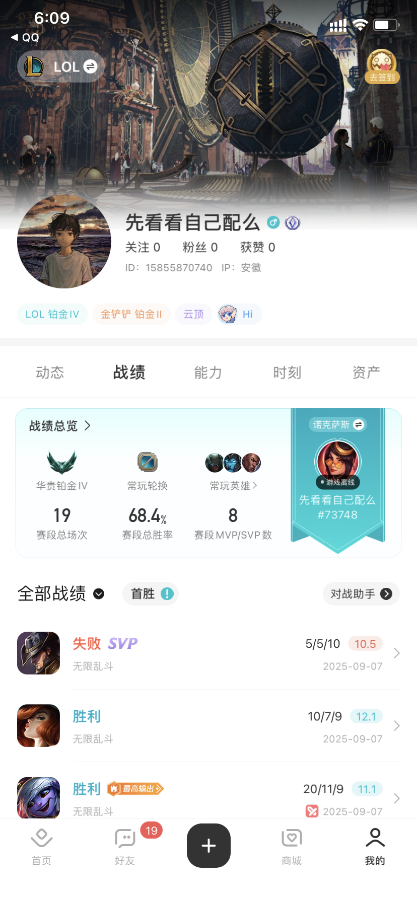 段位:487级 华贵铂金IV级 华贵铂金IV