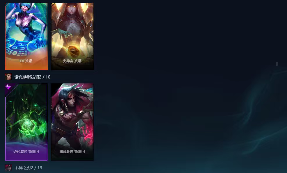 未来EZ,DJ娑娜,赵云子龙,猩红套+炫彩部分,海克斯皇子,灌篮诺克,源计划亚索,全部英雄。