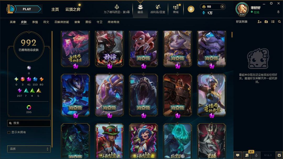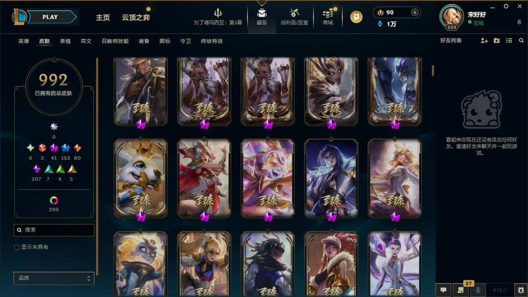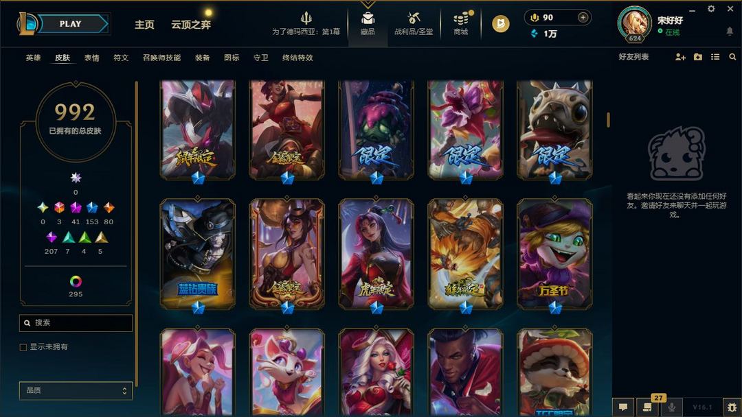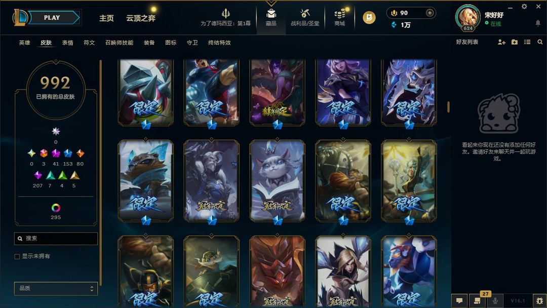 【LOL大王】1300P乄1000原皮乄295炫彩乄23臻彩乄41神话乄153限定乄替父从军