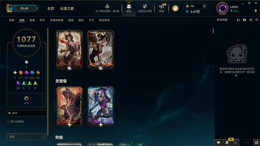 战争学院【可排位⭐质量新皮1100】圣堂瑟提金克斯⭐殿堂传奇卡莎阿狸⭐质量神话诺手阿狸艾克烬