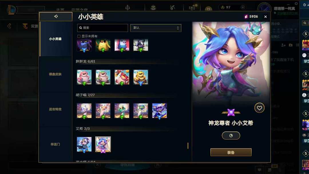 3终极 66神话 134限定 107传说 160史诗 神话幻想西部魔影永恩 EDG全套冠军皮 kda不朽阿狸 神龙尊者小小艾希 灵剑之境棋盘