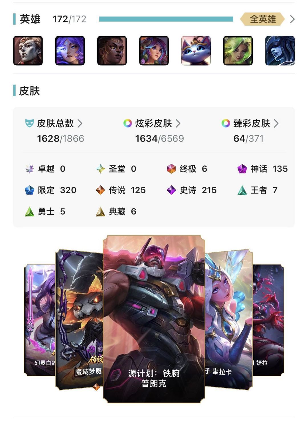 █1600多原皮肤█1700炫彩█64臻彩█不全部介绍了超值极品账号