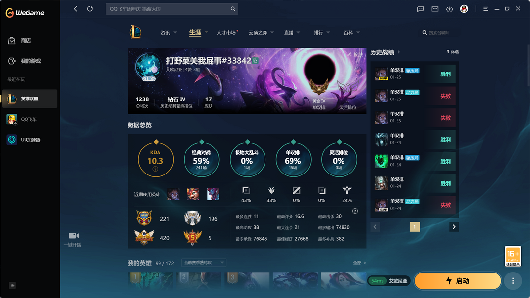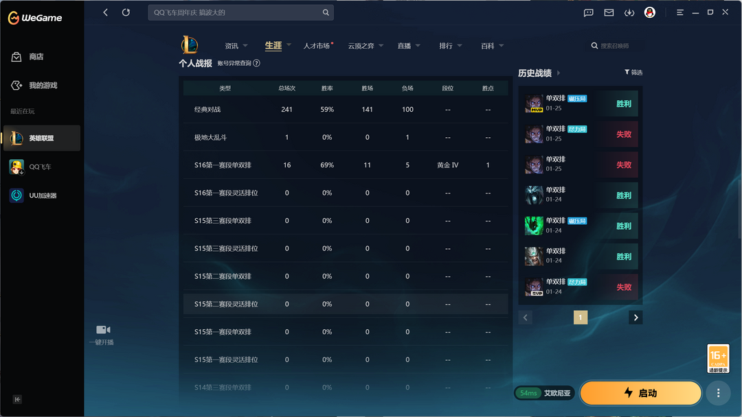 段位:160级 荣耀黄金IV级 荣耀黄金IV