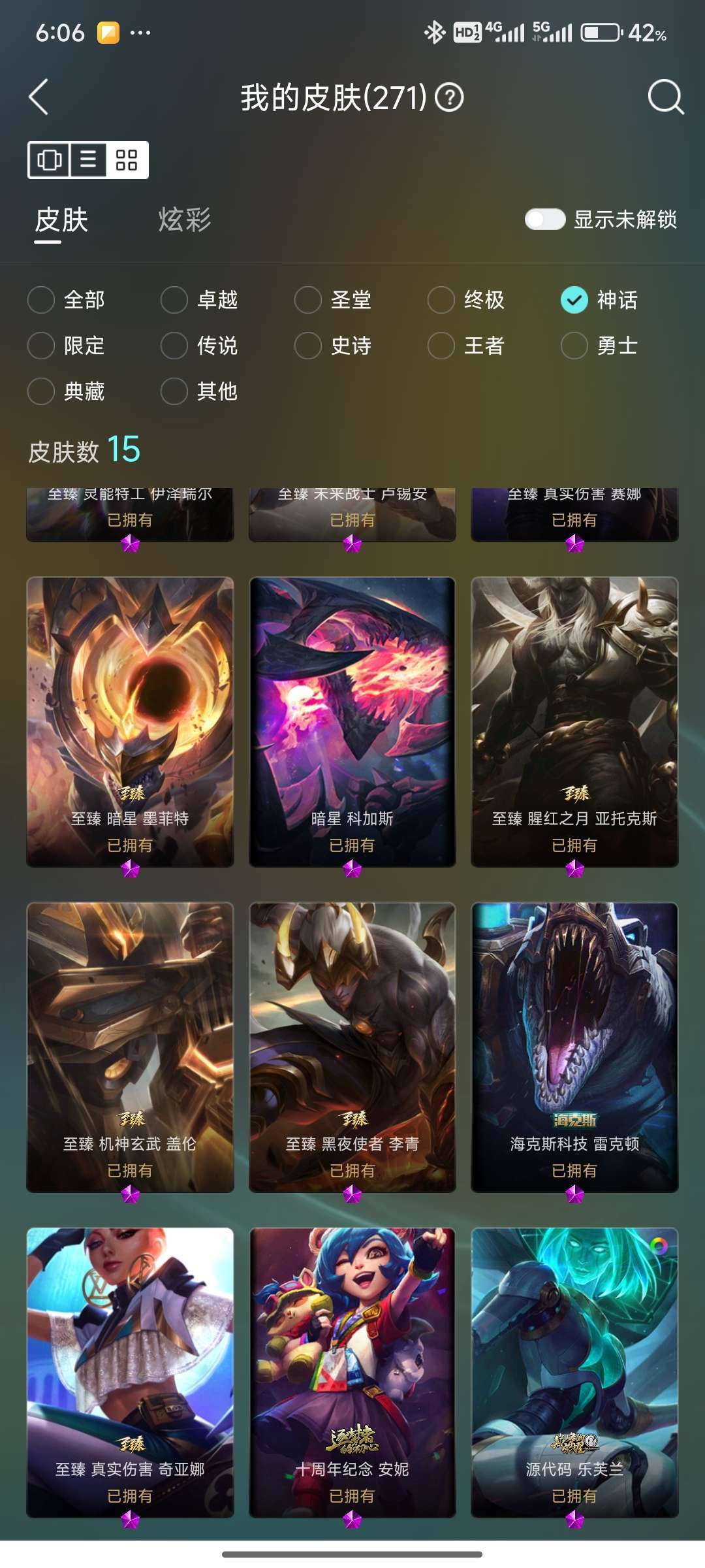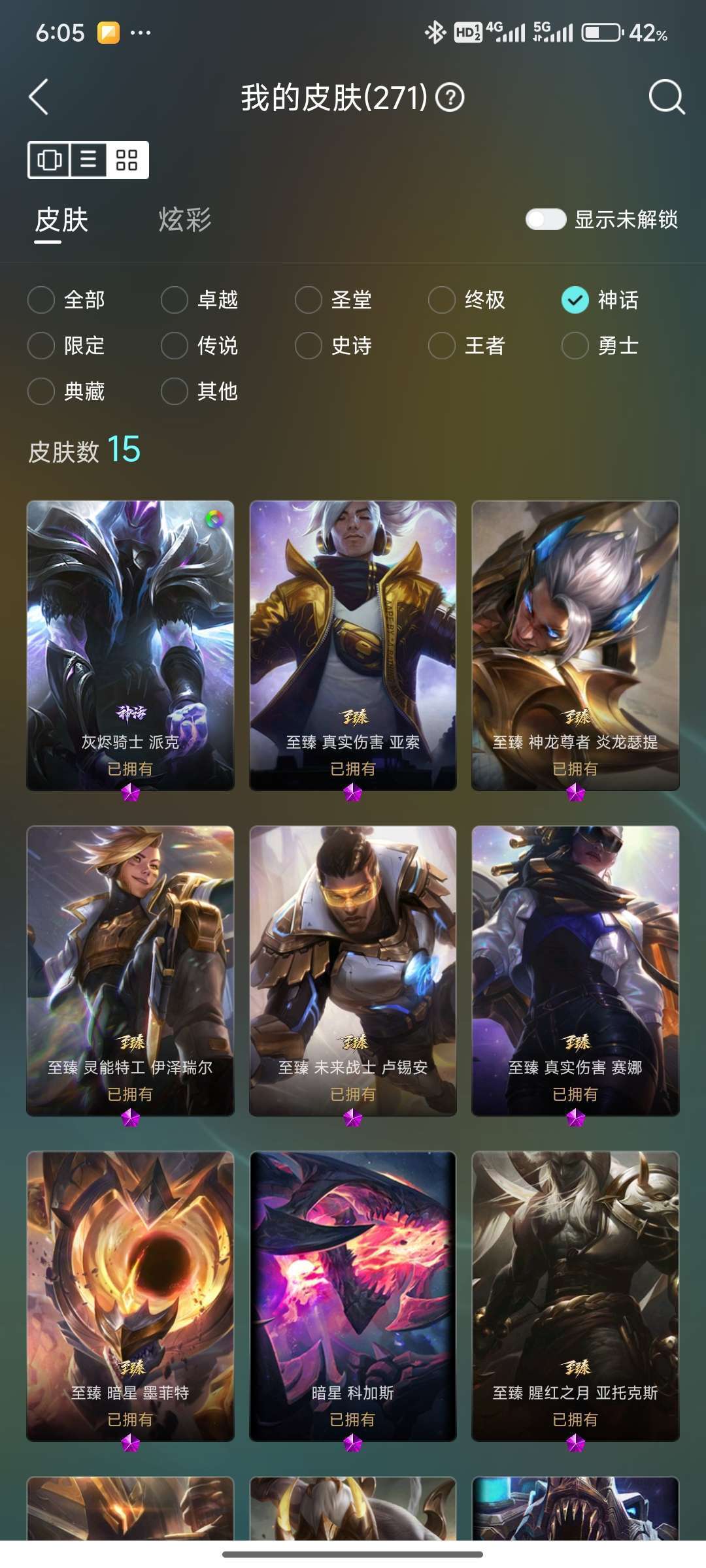 神话亚索 神话派克 ➕15至臻皮肤,英雄常用手感好皮肤都有,edg佛耶戈
