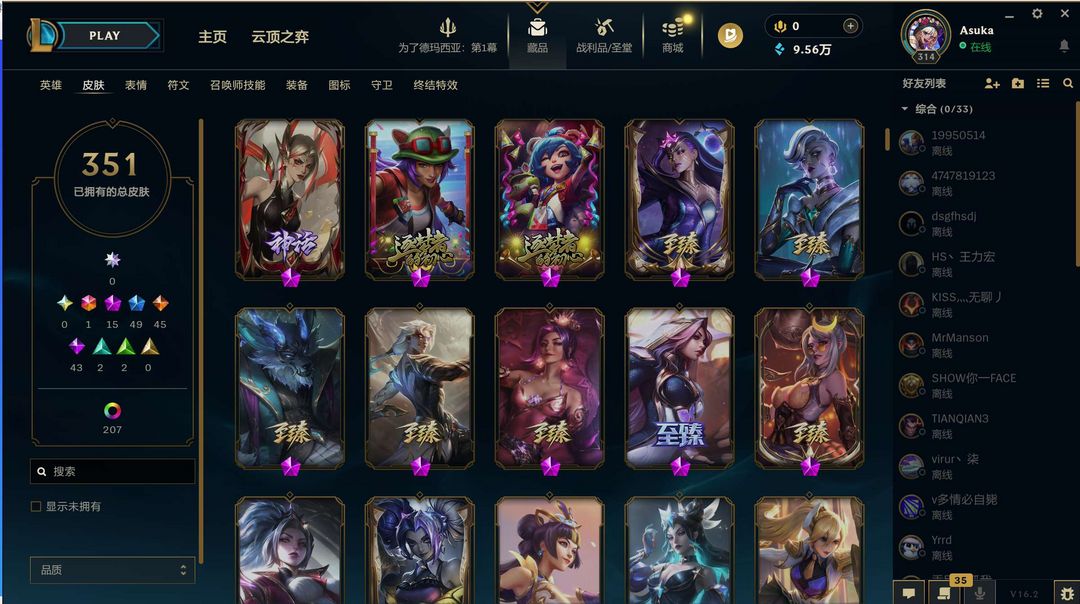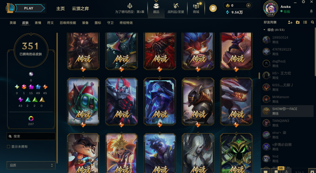 全英雄 -351皮肤-15至臻-49限定 -45传说皮肤-云顶之弈神话棋盘-小小格温-玉剑传说男刀-