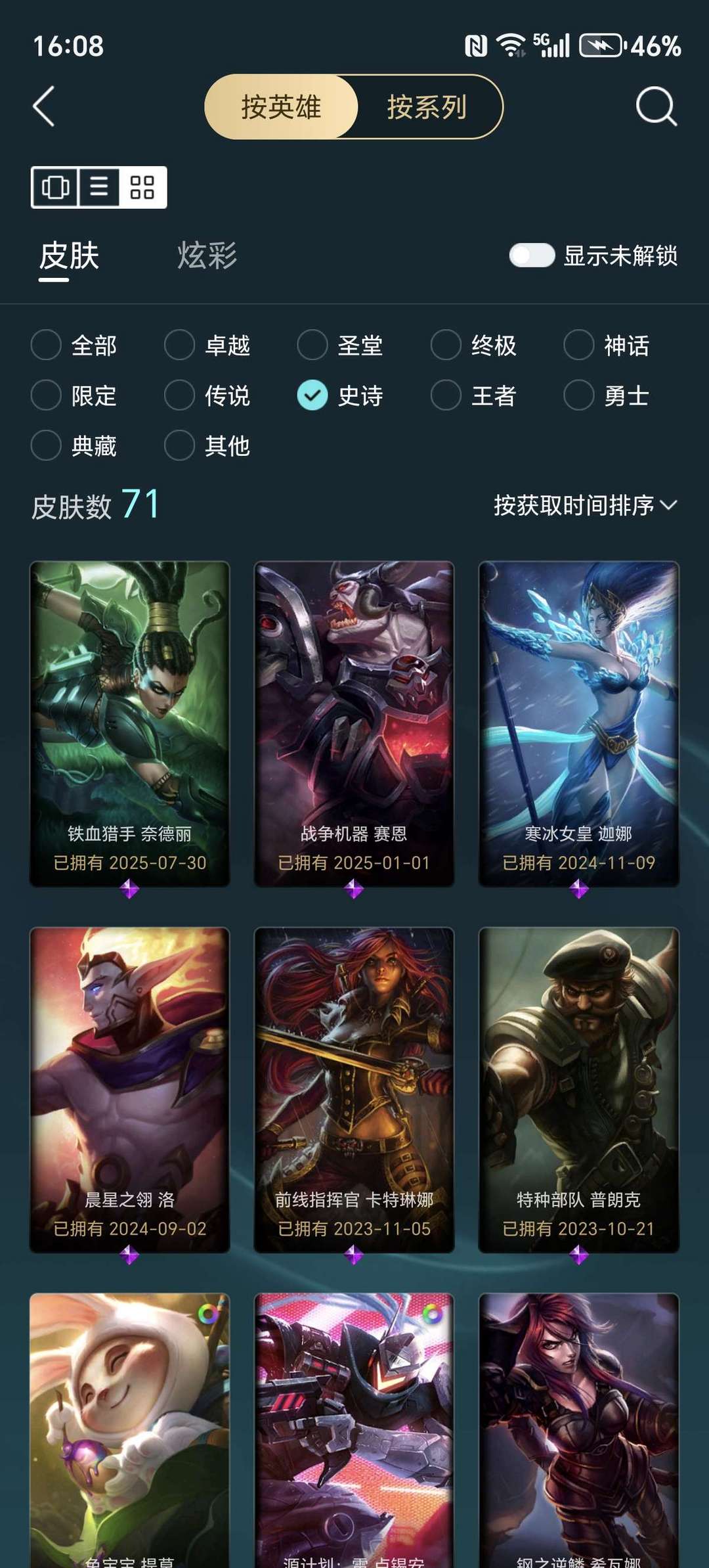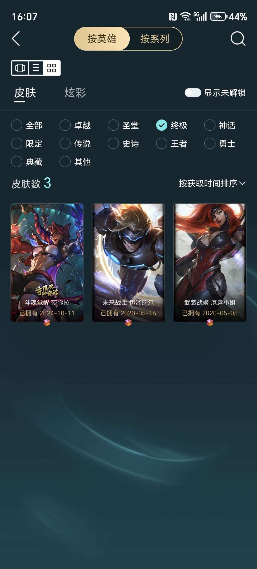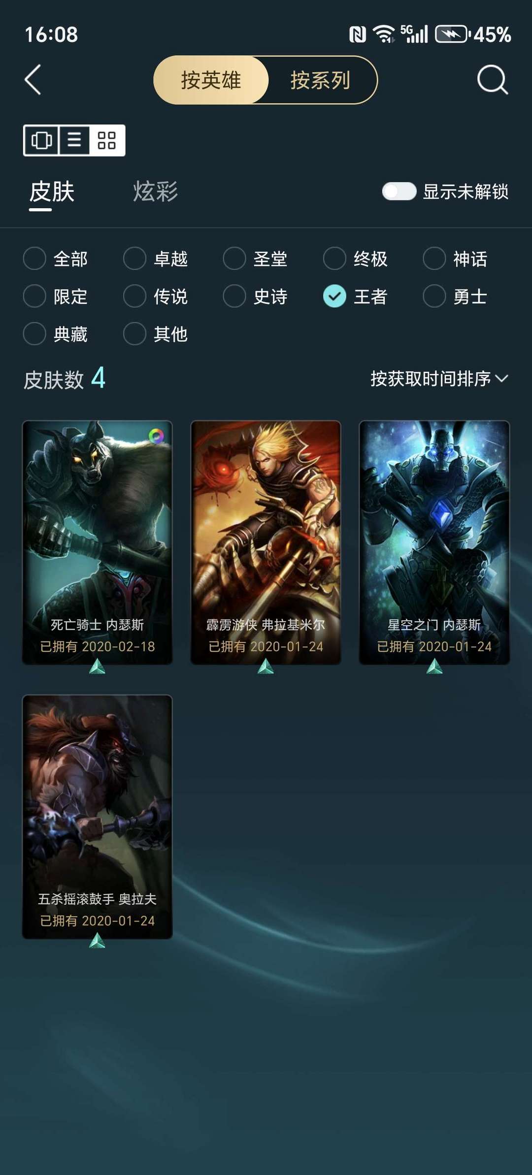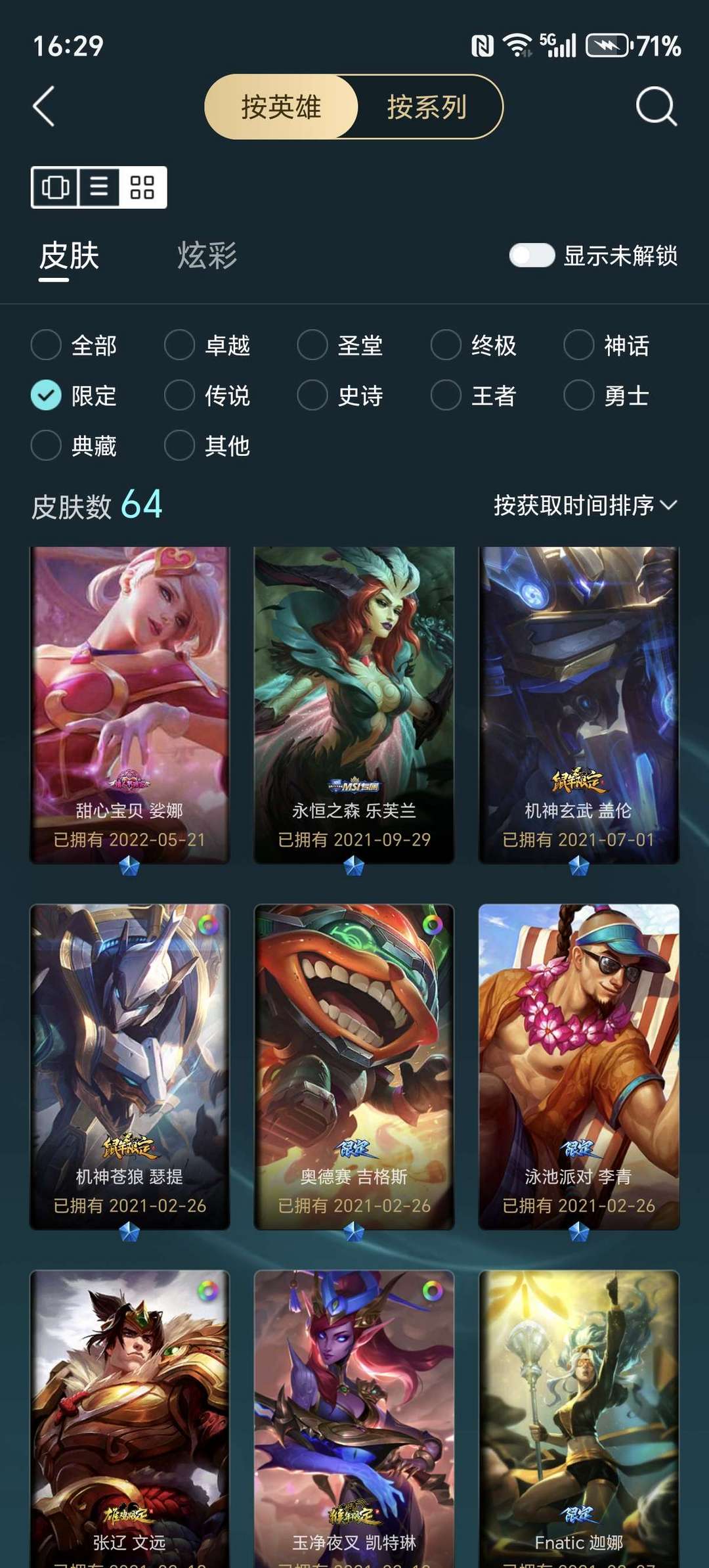全英雄,372个皮肤,152个炫彩,3终极,13神话,64限定,44传说,71史诗,4王者