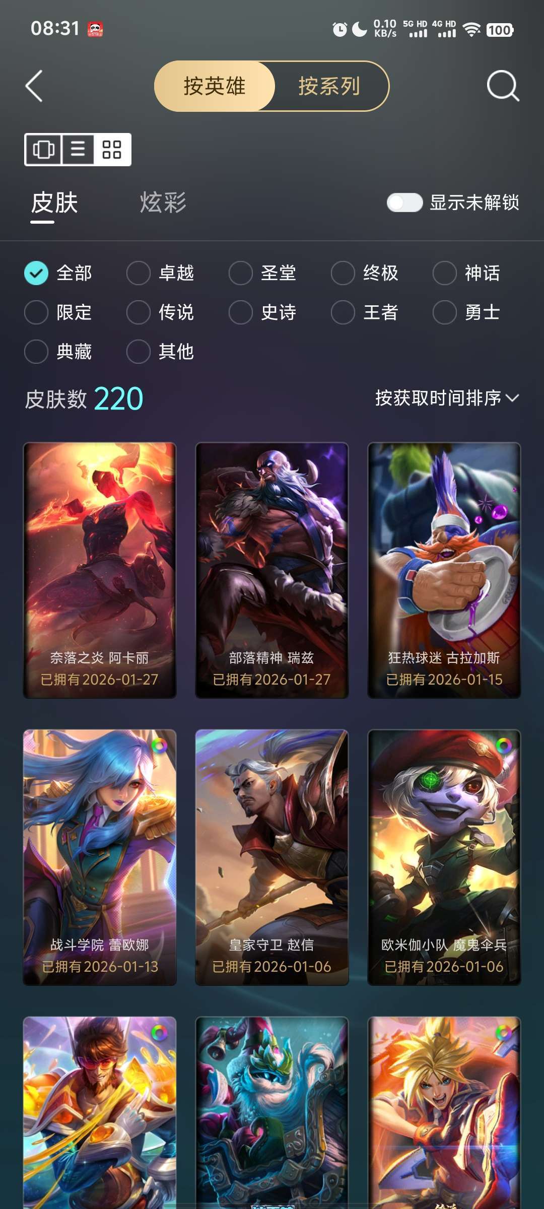 全英雄,各种冰雪节限定,老鼠都铎王朝炫彩,可排位