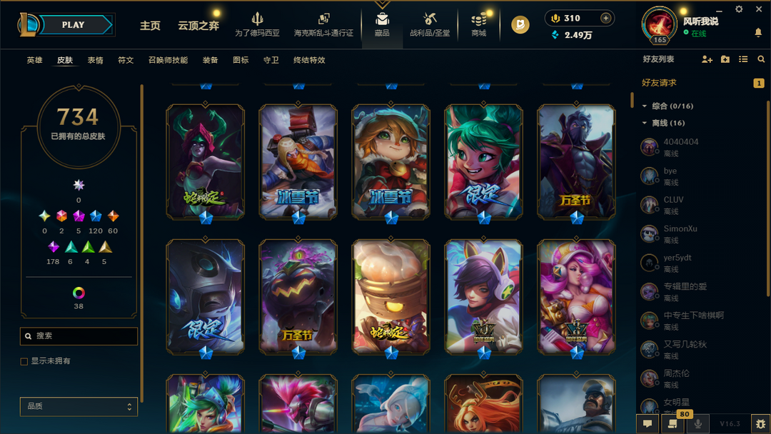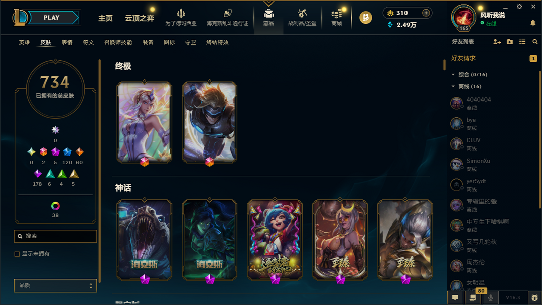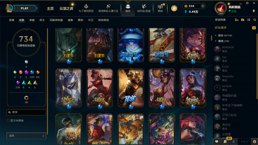 龙瞎海克斯鳄鱼薇恩各种至臻皮肤IG限定皮肤基本每个英雄都有两三个皮肤皮肤很多