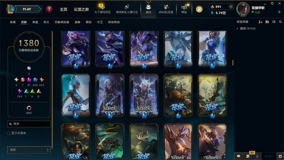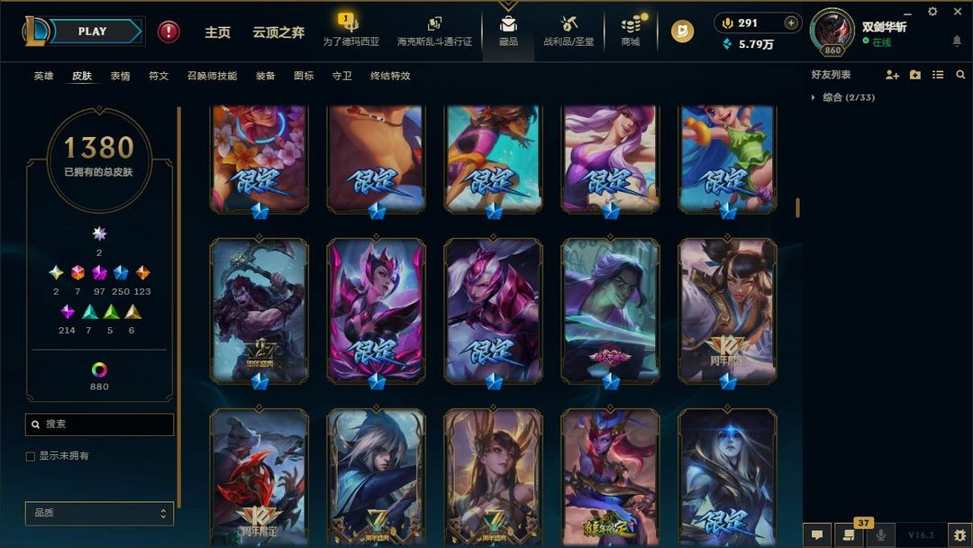 【LOL大王】2300P乄1380原皮乄880炫彩乄王佛耶戈乄破碎金克丝乄乄创世亚索乄炽天使永恩