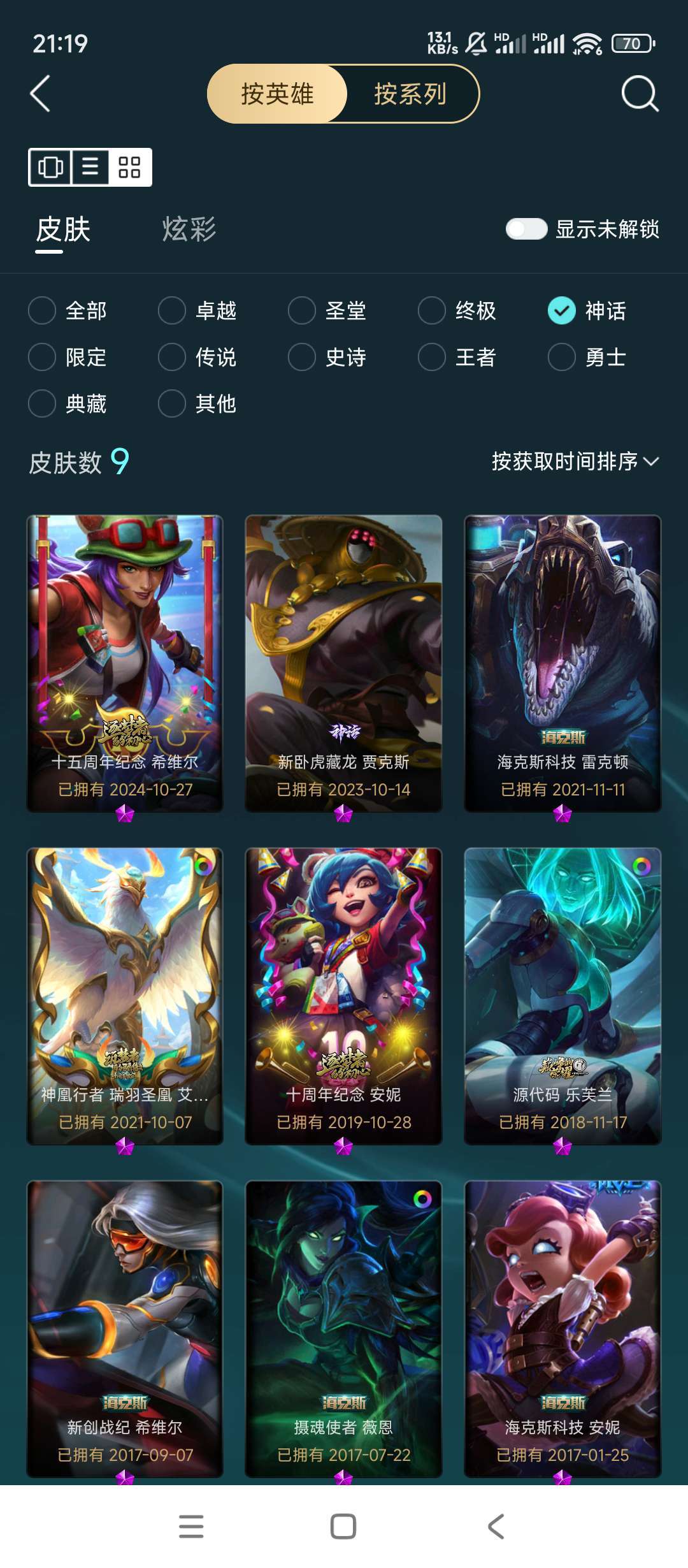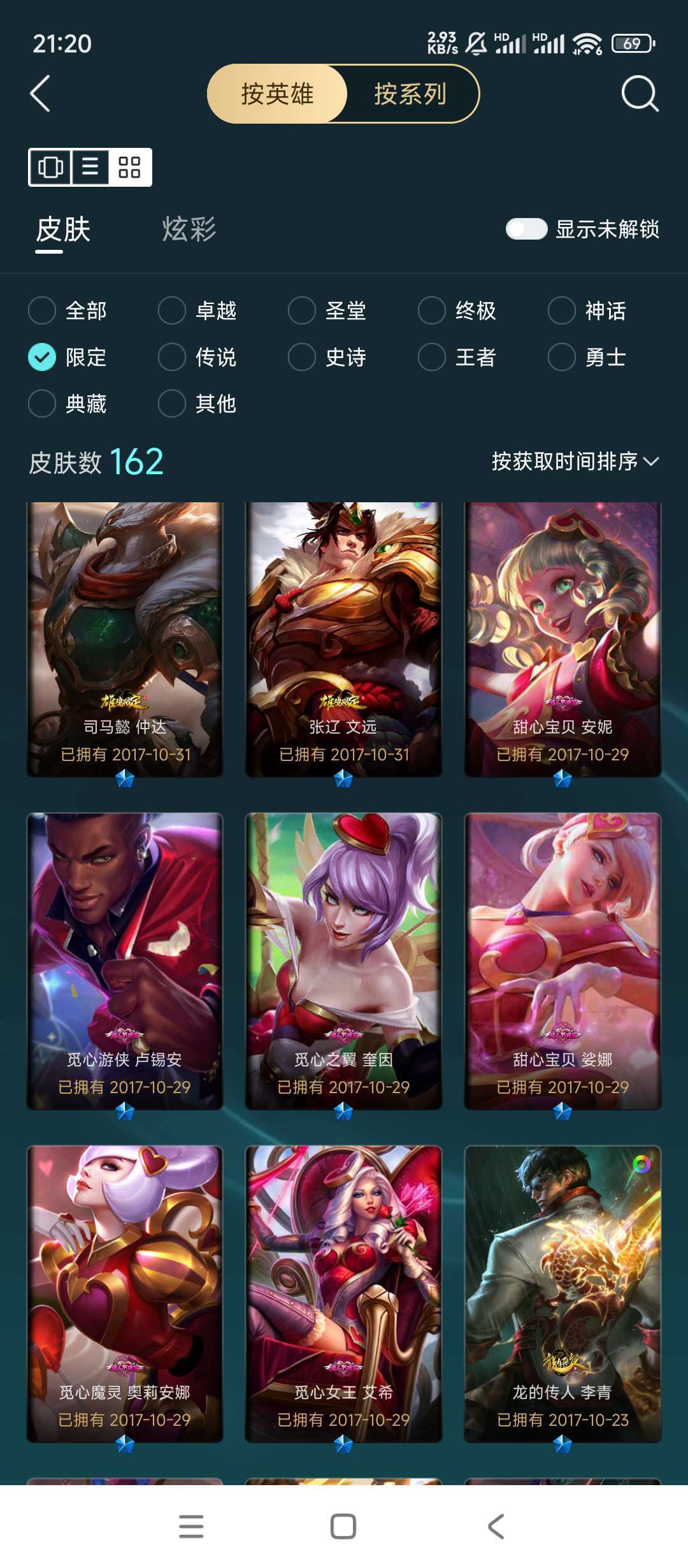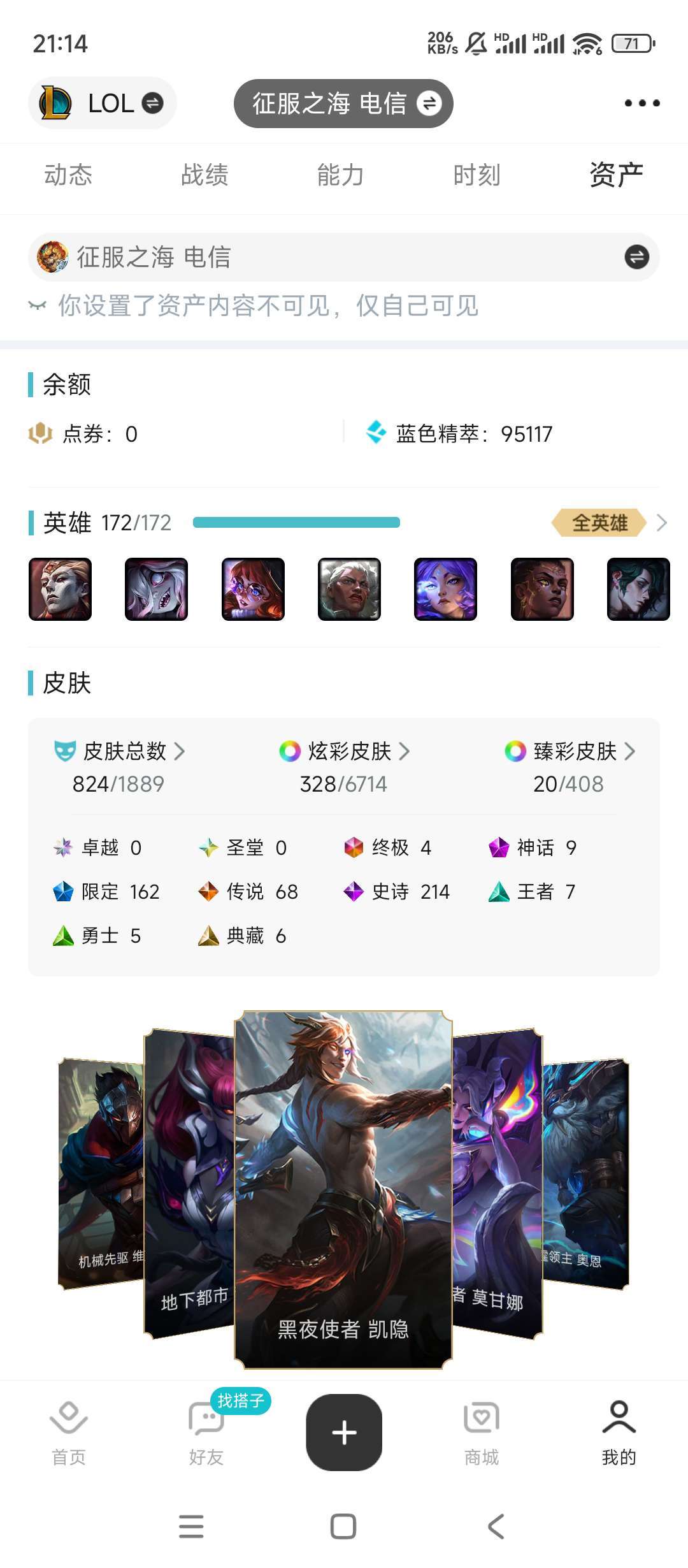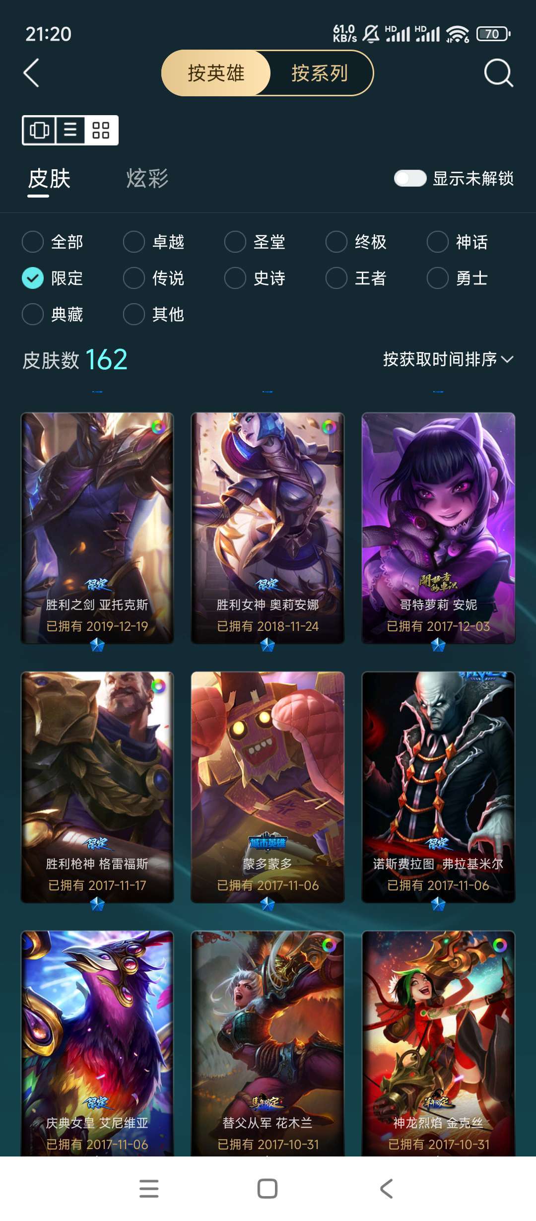 蓝龙瞎+黑龙瞎+哥特萝莉+未来战士等824皮,4终极+9神话+162限定+68传说,全英雄