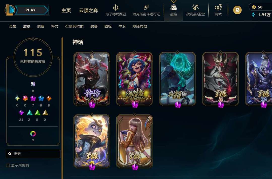 全英雄,115皮肤,7神话, 低段位,可以带妹!