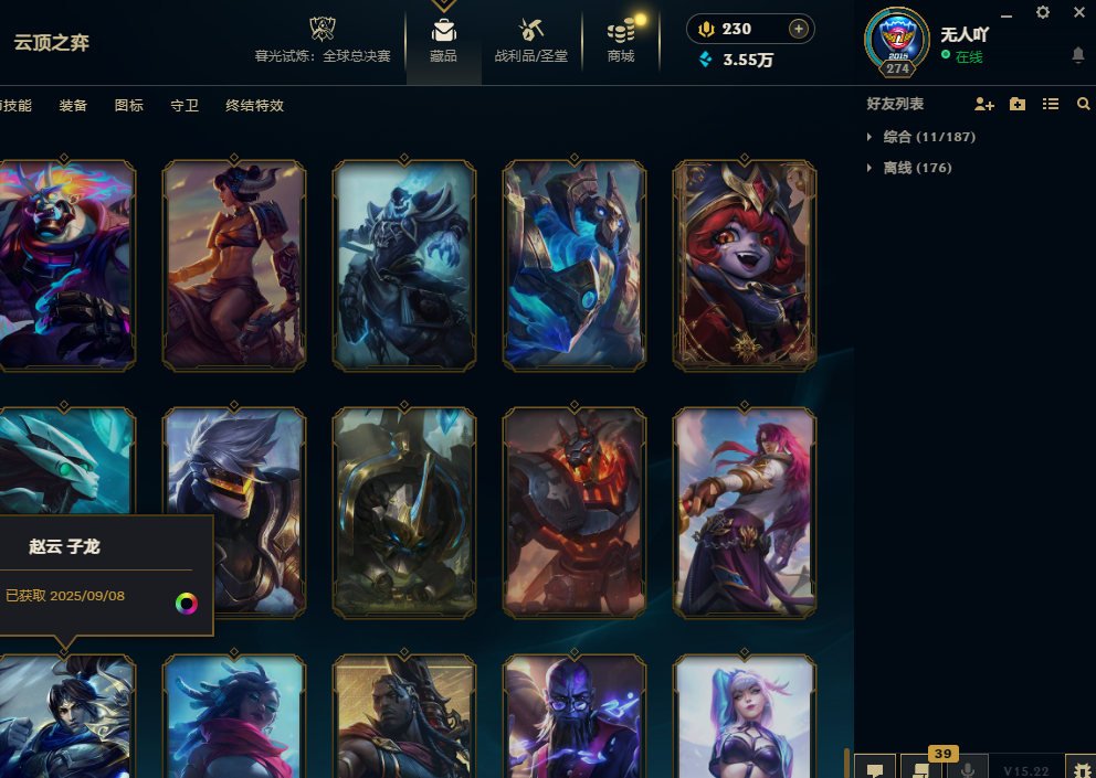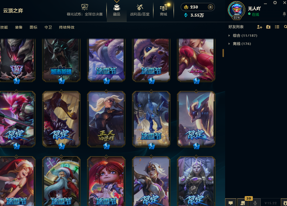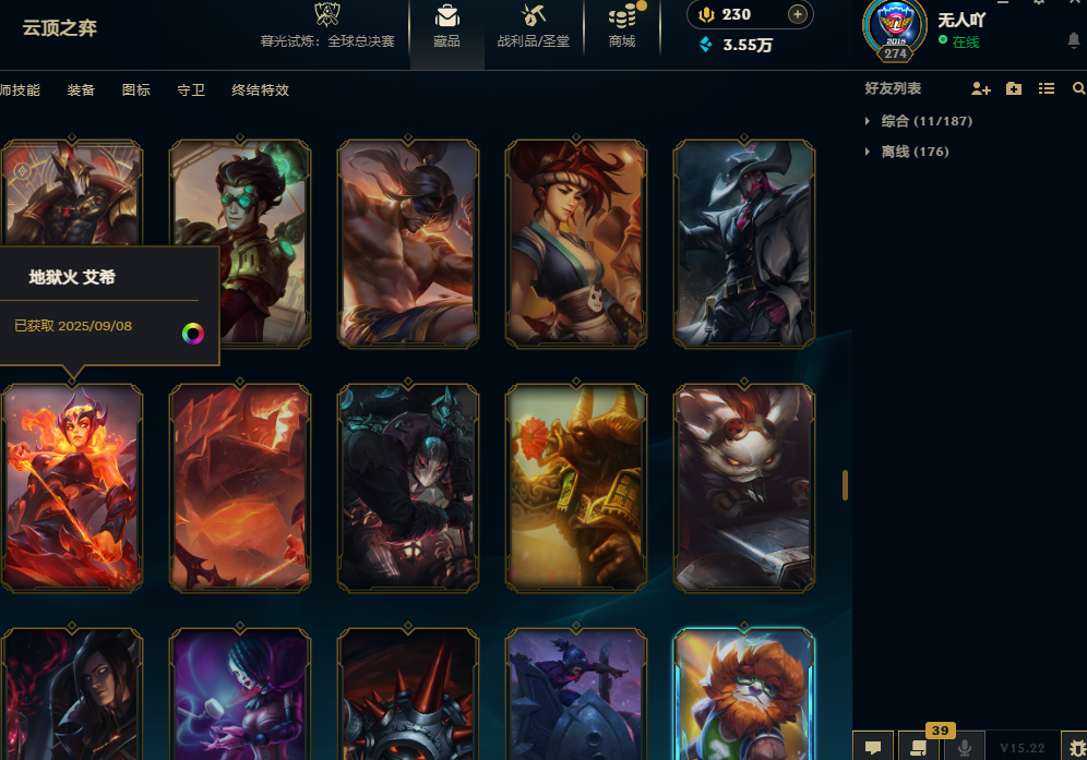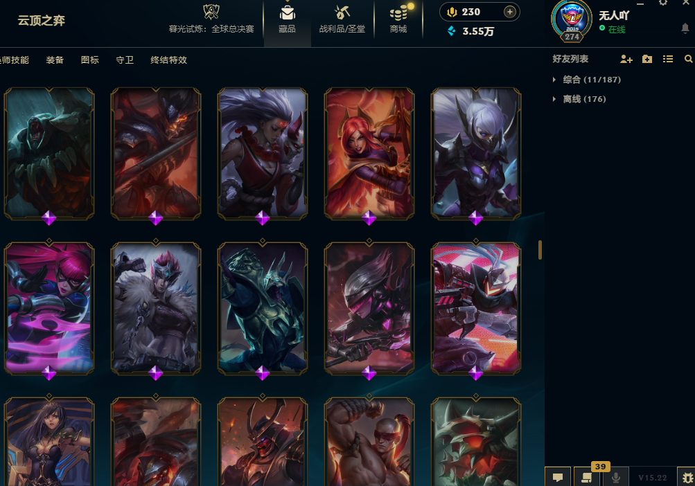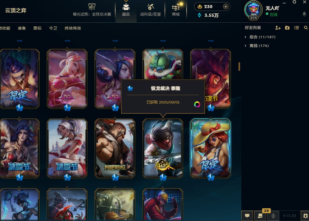 600皮肤海克斯鳄鱼T1塞拉斯灵魂劫地狱火加里奥艾希神龙瞎冰雪金克斯小炮波比龙刀SKT瞎子冠军战队套