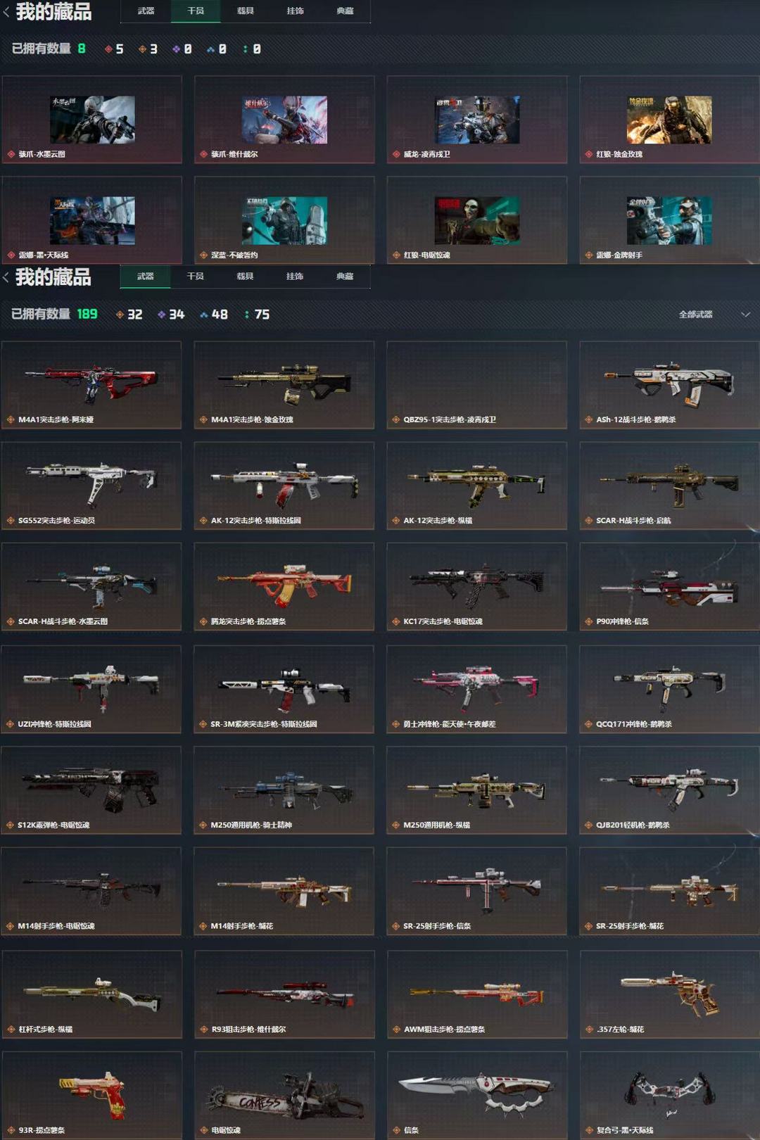 五红皮❤️信条 电锯 双刀❤威龙 凌霄戍卫❤️水墨云图麦晓雯❤️蚀金玫瑰红狼❤️黑 天际线露娜