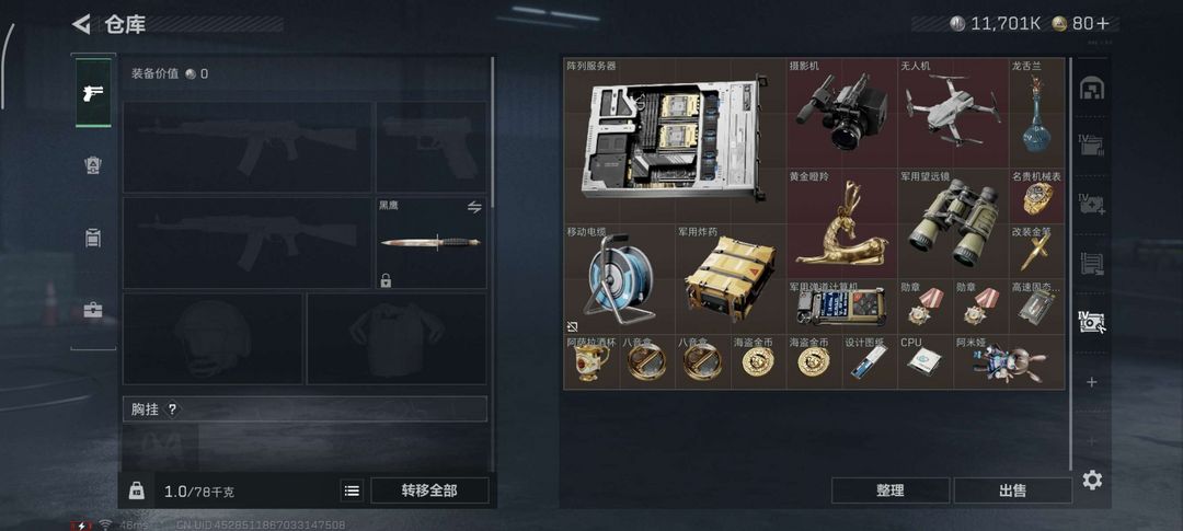红皮黑鹰手持刀具,六甲,保险体验卡枪皮等都有尽情摸金,唐人号,高体力负重,秒协助,可加好友全地图