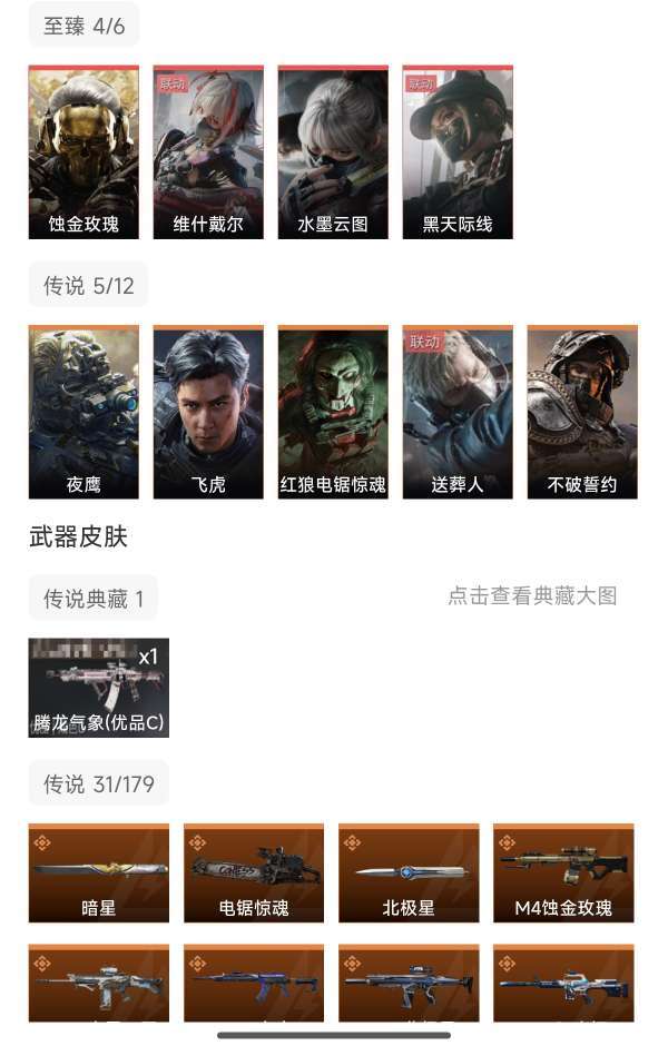 9干员4红蚀金玫瑰,吴彦祖,3刀,北极星,暗星,维什戴尔,水墨云图,31款传说枪皮