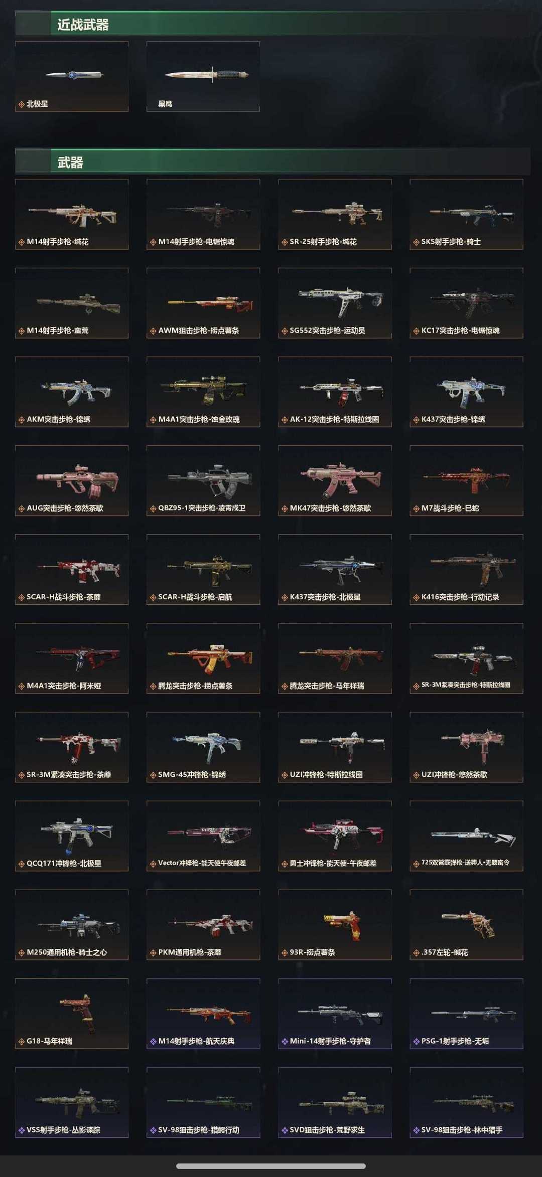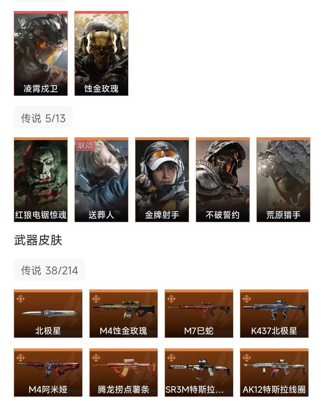 皮肤号 北极星凌霄茂卫,蚀金玫瑰,38款传说枪皮