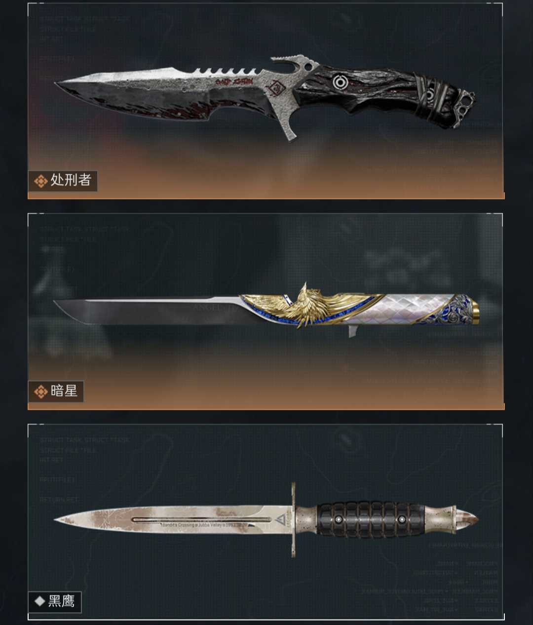 百万哈夫币 新刀皮坠星者❤️s9六格❤凌霄戍卫❤3红皮❤️刀暗信/处刑者❤️维什戴尔❤蚀金玫瑰❤铁面判官