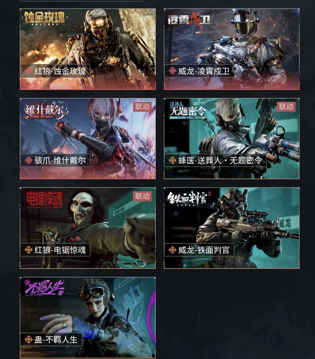 禁止开挂毁号!都有实名能找到人!!!凌霄戍卫❤维什戴尔❤蚀金玫瑰❤红狼电锯惊魂❤铁面判官❤送葬人❤不羁人生 近战:暗星/处刑者