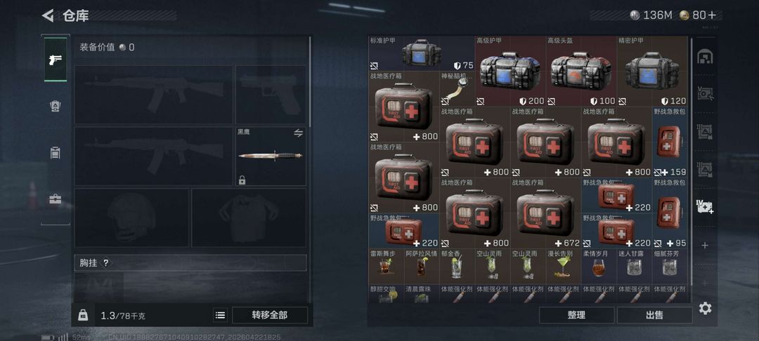 猛攻开黑体力4/负重4/蛊-不羁人生/黑鹰/典藏外观0/武器外观数0