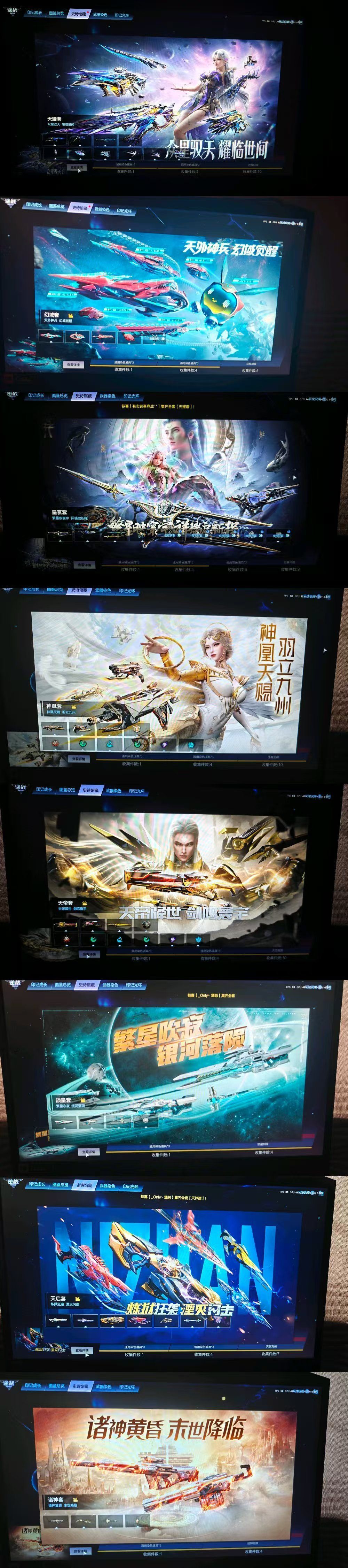 新套已秒,神御天耀10+10 天耀套5+5/星寰套幻域幻海/神凤 套天帝套4+6核心/陨星套(天启套7+4/诸神套/烈焰 战神/火神炎帝/炽鬼/白虎/极夜星辉/混沌/丈八蛇矛/ 原子力量/灭世骨刃/精绝女王星泪/玄耀灵汐/鸣叱炎 神/赤龙魔盔/迷失蔚蓝/凌波幻翼/熊猫背包/超梦革新 之戒/血魄之戒/