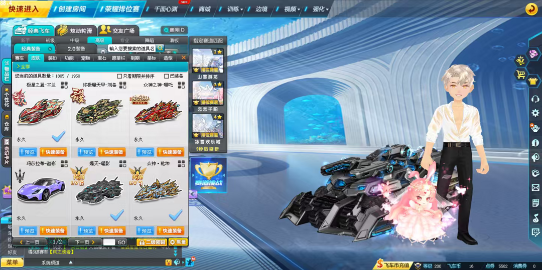 竞速宠物8个,都是满改单四宝珠,可排位,s车都有皮肤