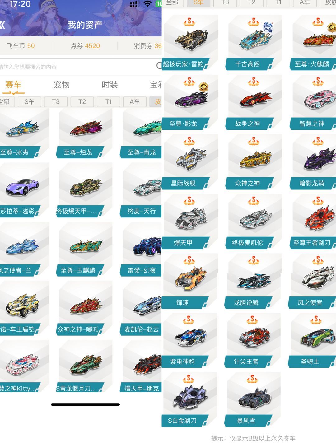 226-S--18辆:终极迈凯伦+赵云,爆天甲+朋克,紫电神驹+梅, 风之使者+兰, 众神之神-哪吒,白金剃刀-关羽,智慧之神-hellokitty,暴风雪+极光4阶,终麦天行3阶,超核雷蛇,针尖王者,龙胆逆鳞,至尊王者剃刀,暗影龙骑,战争之神,星际战舰,千古高阁,锋速。