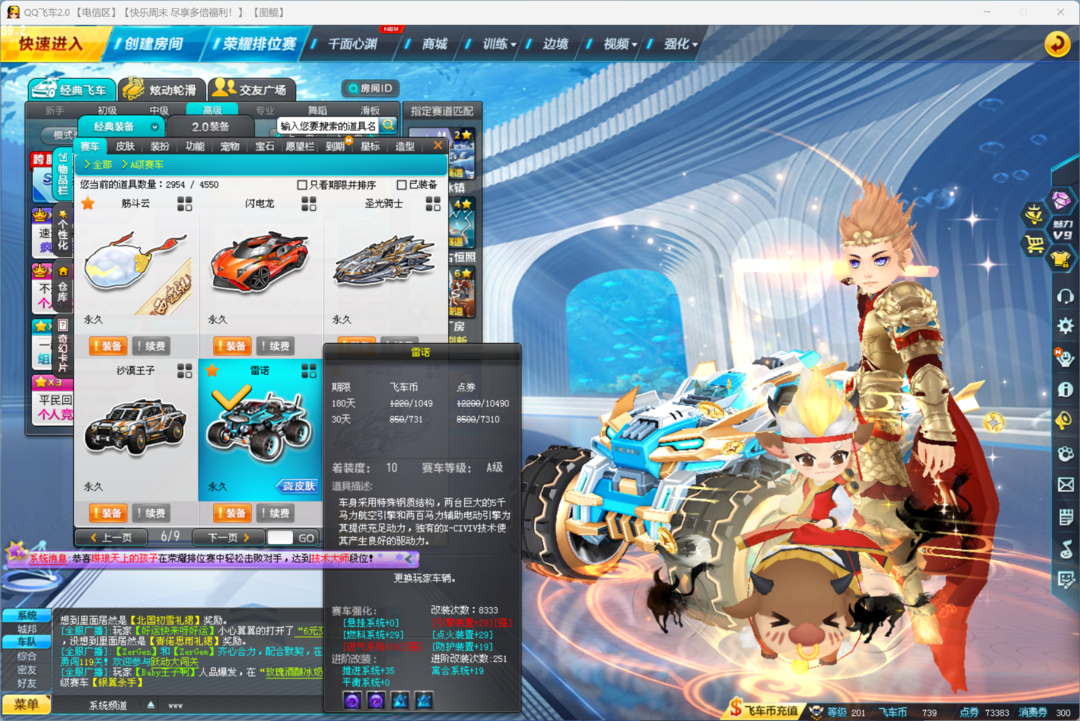 电信区钻7 3辆T2悟空齐天大圣五级皮肤三颗四级宝石 孙悟空 鬼武者 永久S车 爆天甲皮肤奥丁 终极爆天甲逍遥 刘备满改双四级宝石 风怒斗战胜佛改装29A车雷诺改装全29双四级宝石 幻夜皮肤4级 针尖 等多辆A车 t1 战魂 暗夜王爵