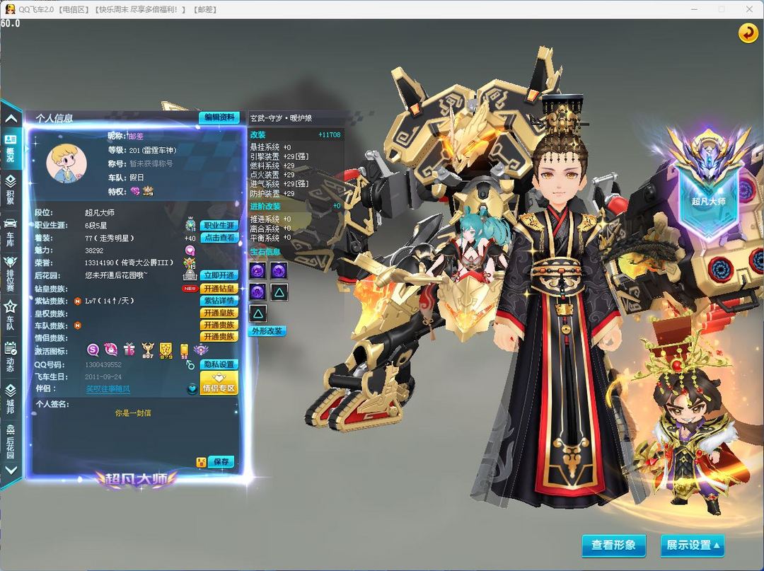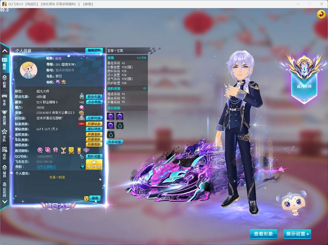 顶级227年限S蛇车至尊-玄冥满改三颗四级 X次元马年限定机甲皮肤玄武·守岁-暖炉娘(带超级喷,设置里记得打开大喷特效) 永久S炼狱使者 满改双四T2紫焰战神,满改双四雷诺,满改双四穿梭者-车王纪念版,满改双四璀璨之星…… 四级重生绝版飞碟 另有19辆永久A等 强化+10竞速神宠 小孙权 强化+10竞速宠物 白金神兽 男女服饰都几百页,男装有悬浮套,千古一帝套装等…… 魅力3.8W,贵族V9,钻七,超凡大师段位玩家可以自由排位,哪怕掉段也没关系~ 极品二字id:邮差