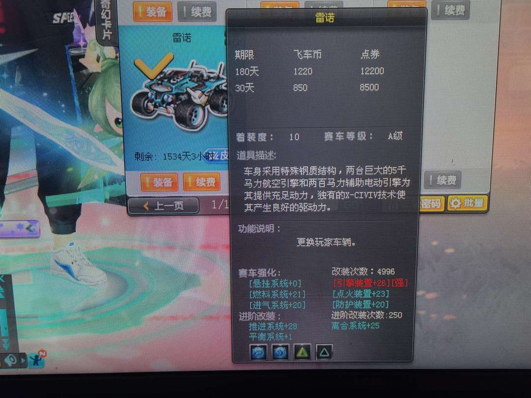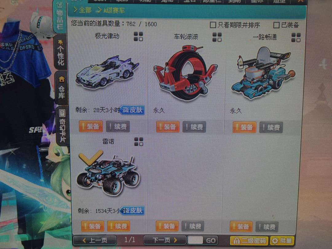 飞车号 飞车雷诺全20+改装,三级宝石 装扮762 排位铂金三