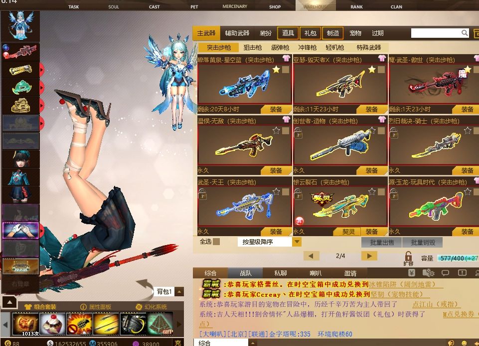 +木兰寒峭套+碧落黄泉星空蓝套+魔武胜套+武圣天王套+飞鸿套+满级惊云落石+