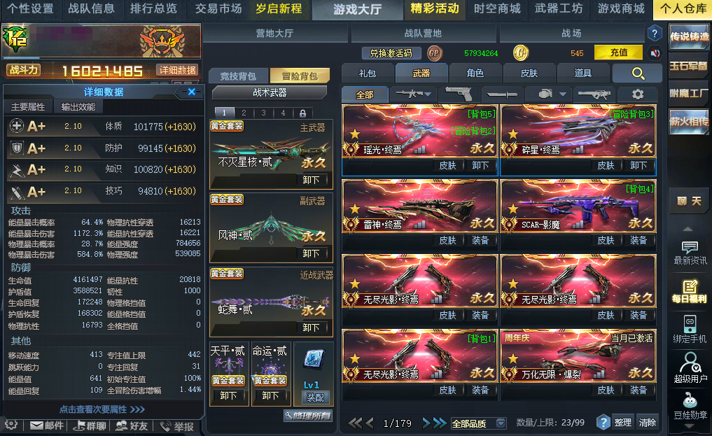 蛇舞全服唯一皮肤樱落和水晶。三强化满同步不灭星核,三强化风神,满同步裁决,满同步次元,满同步蛇舞,满同步聚能装甲。有vip11角色,瑶光终焉和影魔,三级防雷天赋,可竞技。标星的配件武器基本都满配