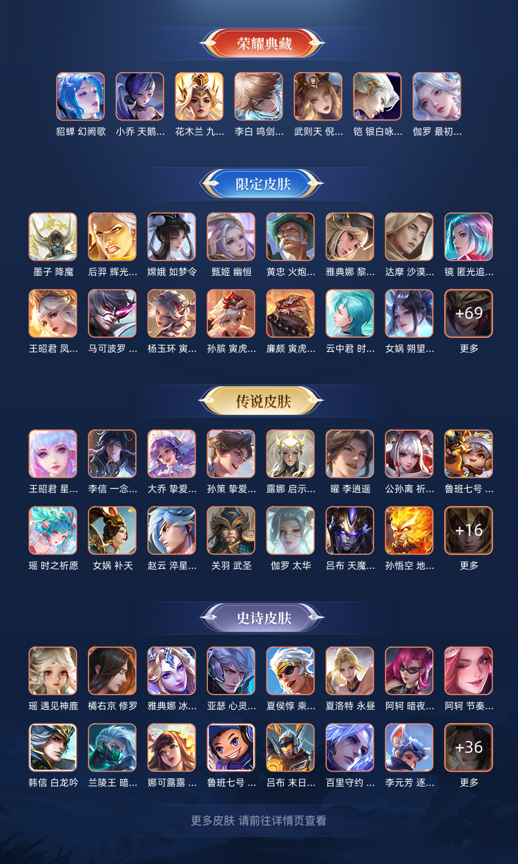 本游戏账号: ,英雄多,皮肤多。典藏皮肤4个,感受典藏皮肤带来的优质体验快感,FMVP皮肤3个,尽情享受FMVP皮肤带来的主角光环, 私人所属英雄皮肤有:小乔 天鹅之梦||李白 鸣剑·曳影||武则天 倪克斯神谕||貂蝉 幻阙歌后羿 黄金射手座||孙尚香 末日机甲||澜 电玩·雷克斯||狄仁杰 超时空战士||貂蝉 仲夏夜之梦,等等