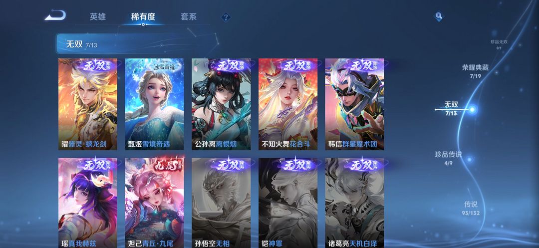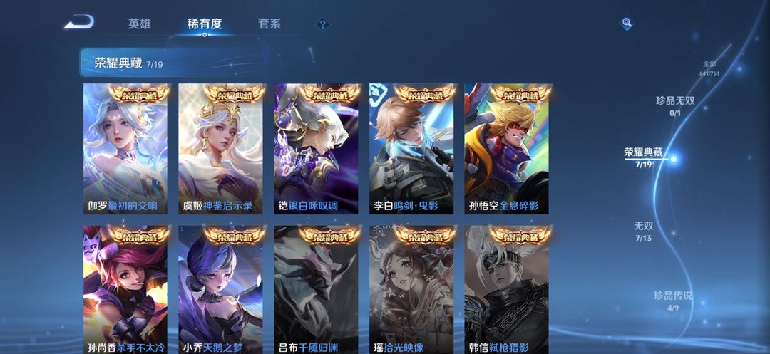 本游戏账号: V10用户,基础段位:至尊星耀IV,英雄多,皮肤多。典藏皮肤9个,感受典藏皮肤带来的优质体验快感,FMVP皮肤11个,尽情享受FMVP皮肤带来的主角光环, 私人所属英雄皮肤有:瑶 拾光映像||花木兰 九霄神辉||夏侯惇 无限飓风号||貂蝉 幻阙歌||诸葛亮 星域神启||小乔 天鹅之梦||李白 鸣剑·曳影||鲁班七号 星空梦想||武则天 倪克斯神谕,等等