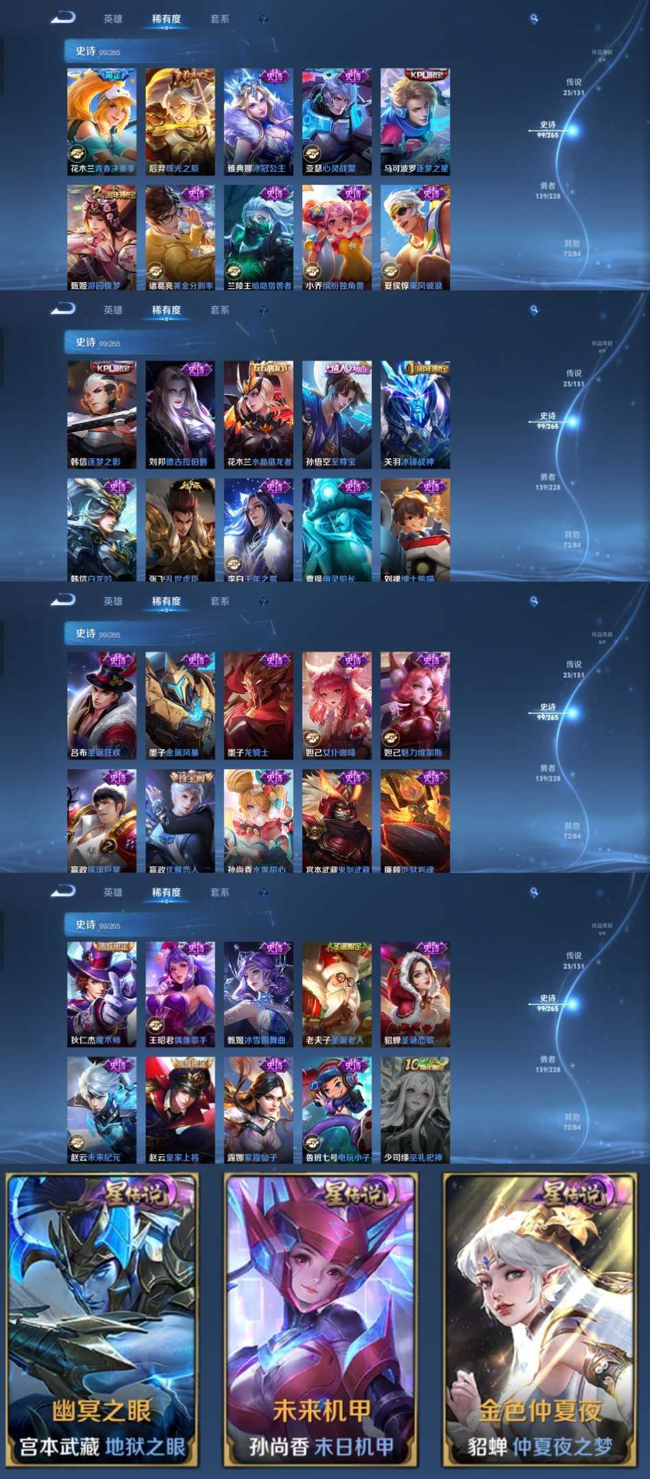 时间到了还登录白玩或者顶号全部改密拉黑处理永不解除,顶号机器会秒禁玩改密,顶号不仅拉黑还没得玩,赚三两块不容易,请理解谢谢。 ❤❤❤❤❤❤❤❤❤❤❤❤❤❤❤❤❤❤❤ 请勿开挂,挂机,送头,骂人,撤单后游戏等如有违规永久拉黑永不解除。 重置二级密码不要费劲了,号主每天都会上号查看,多行不义必自毙,人在做天在看,多做好事多自律,少做缺德事。 该号英雄128个皮肤333个,星传说3个,传说23个,史诗99个,祝您游戏愉快~