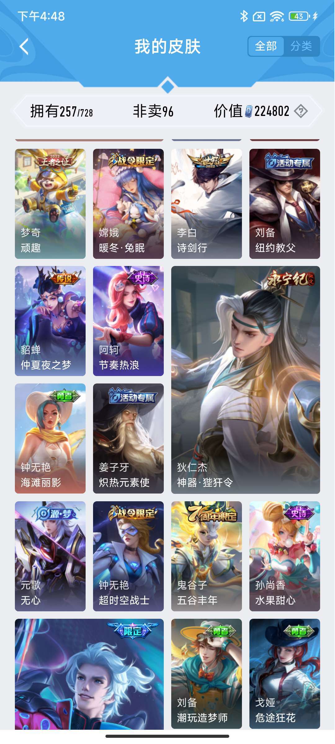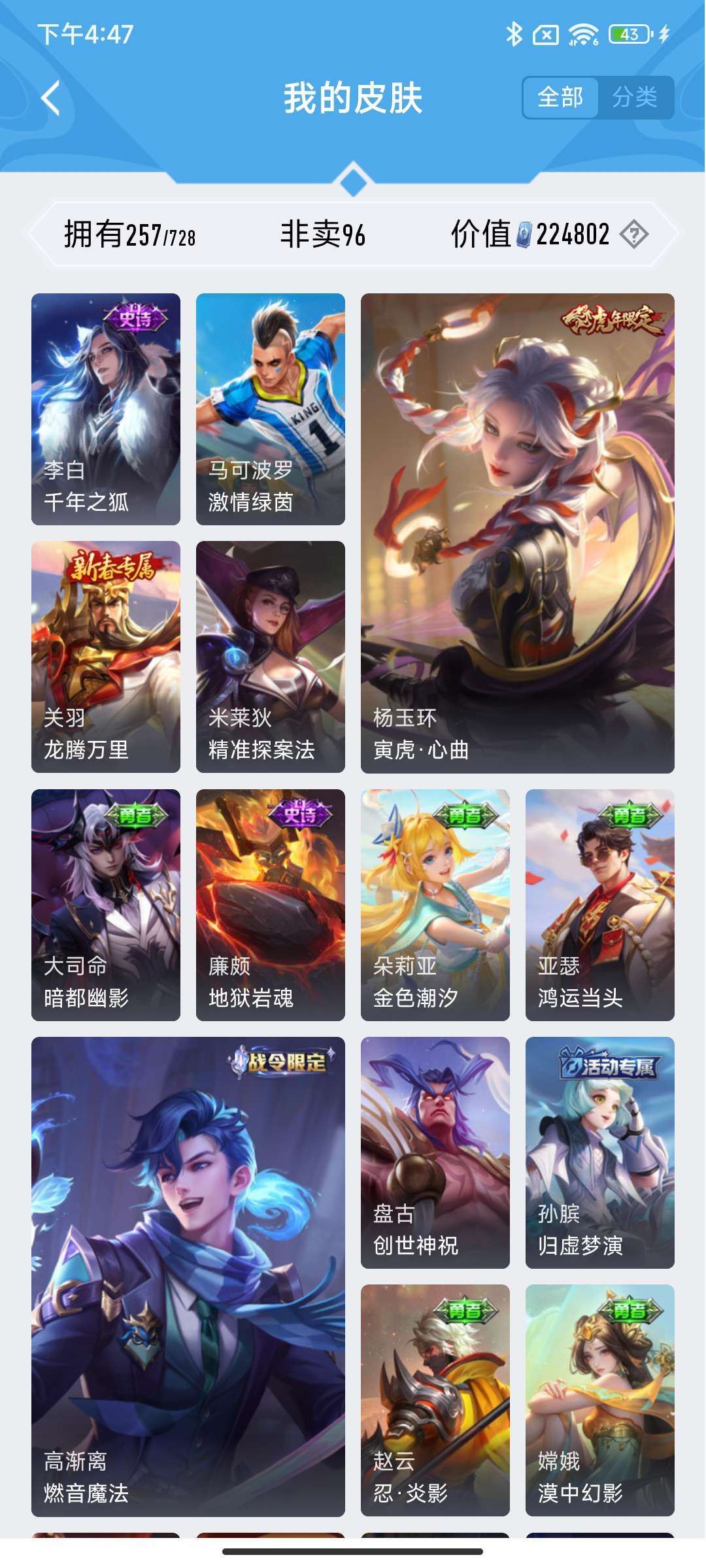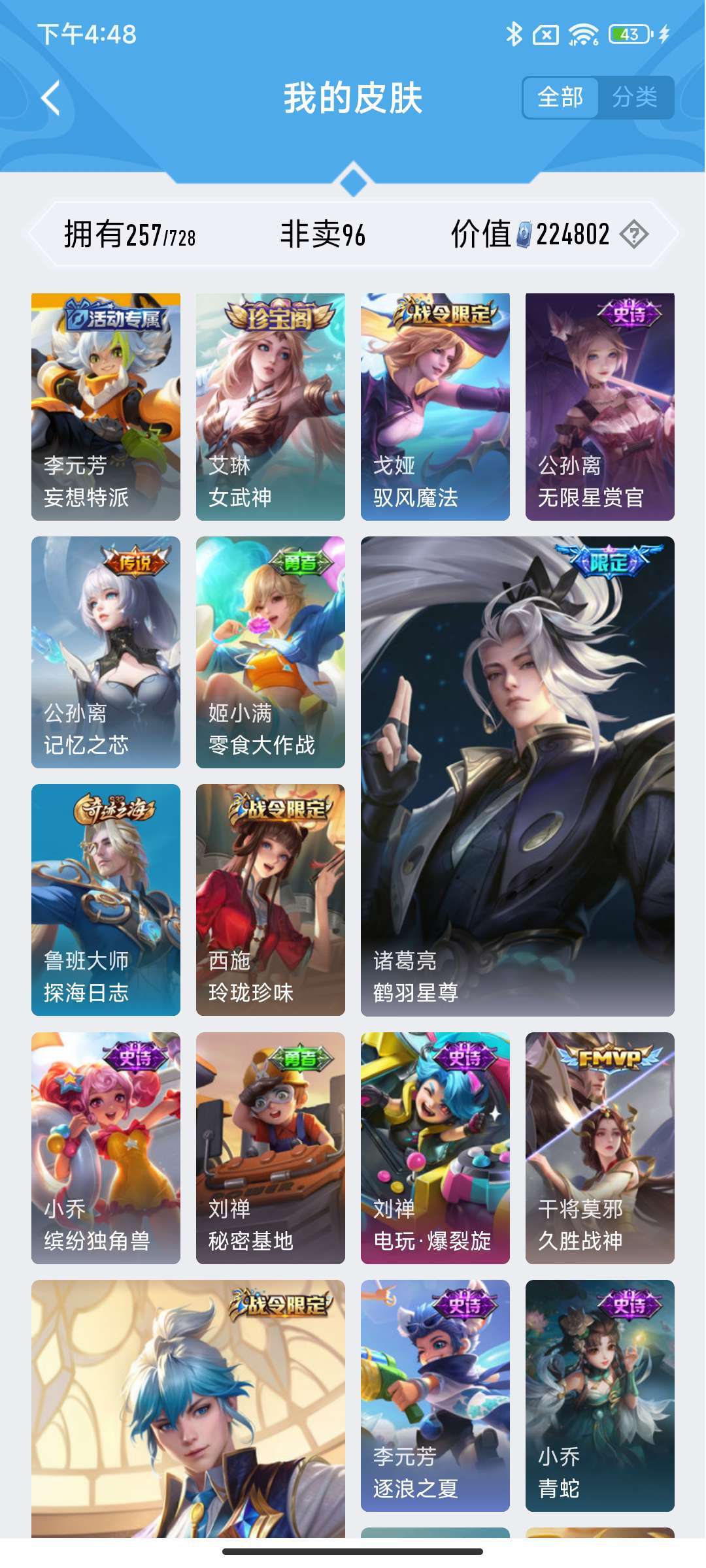 121英雄253皮肤鸣剑拽影@炽阳神光@凤求凰@神威@无双飞将@星域神启@深海之息