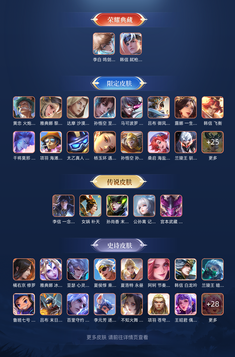 韩信李白有典藏皮服,传说皮也有点,排位巅峰赛都可以打