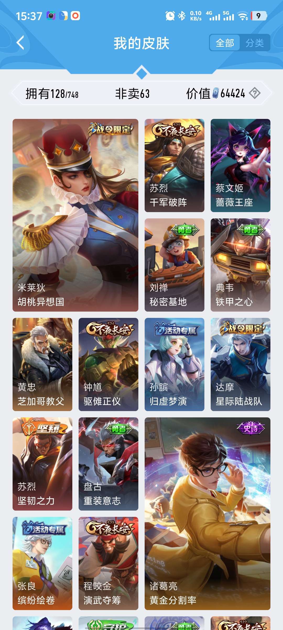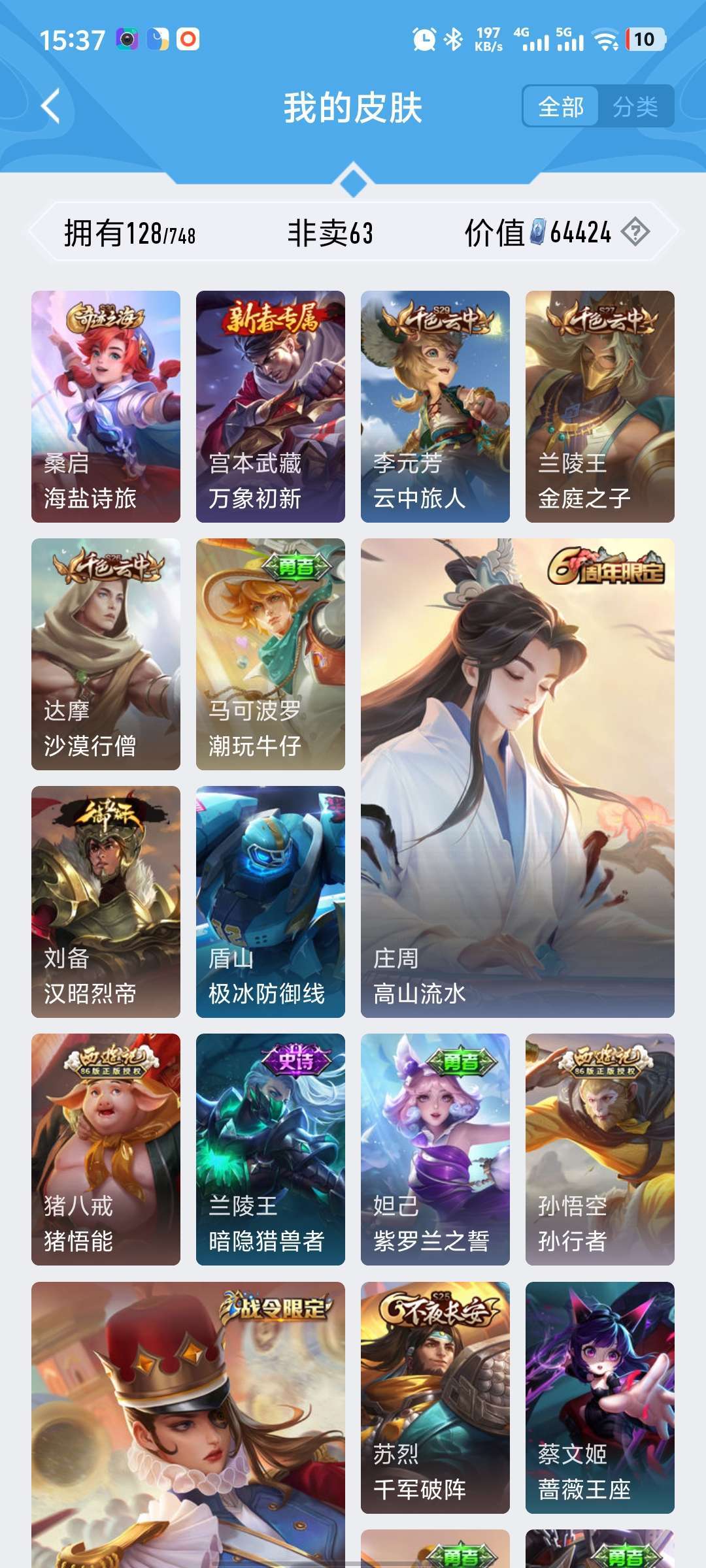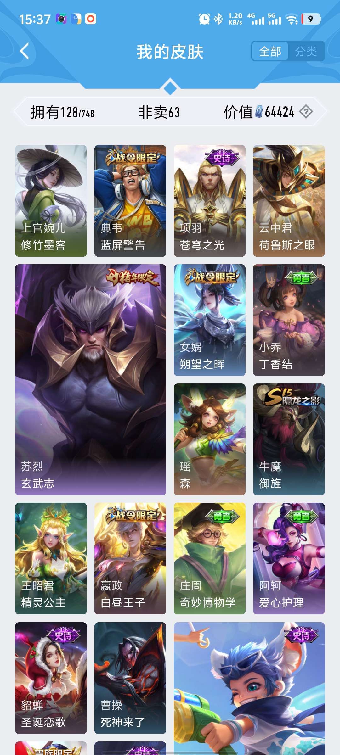 美猴王,猪八戒,苍穹之光,和一些其他的皮肤,铭文满级,可以打排位,低分炸鱼
