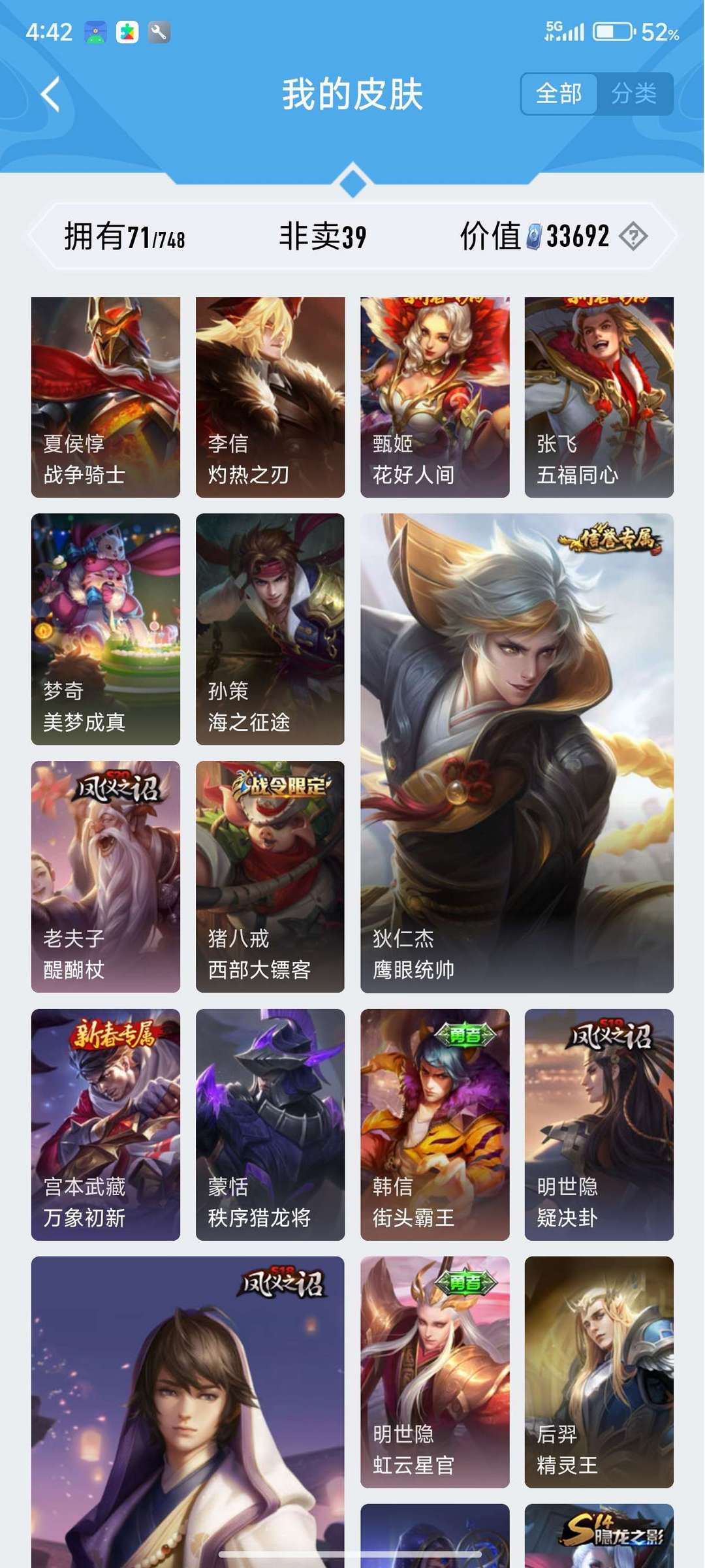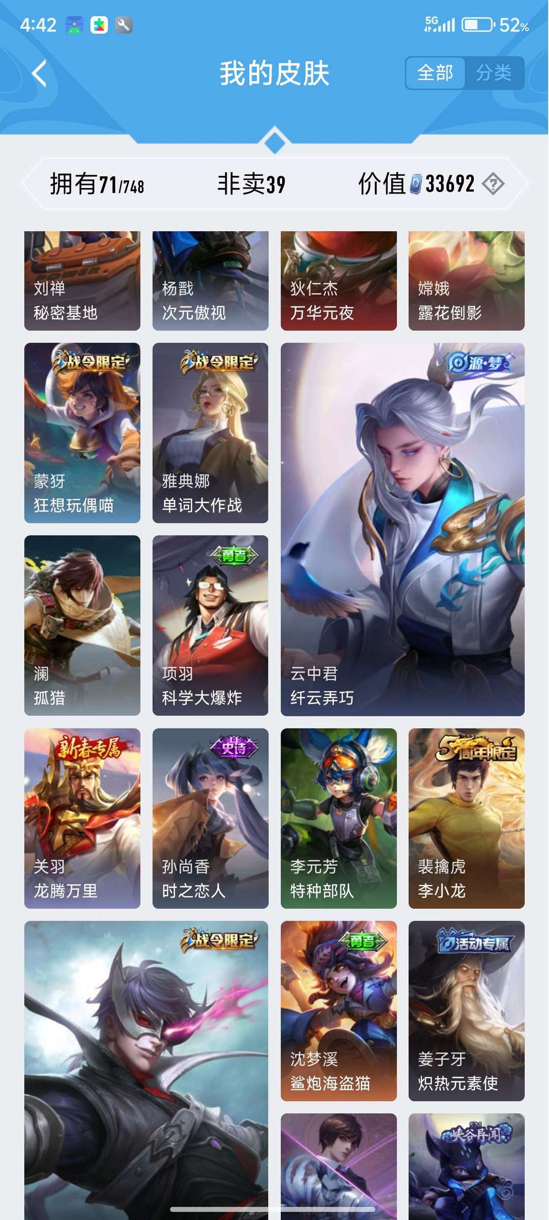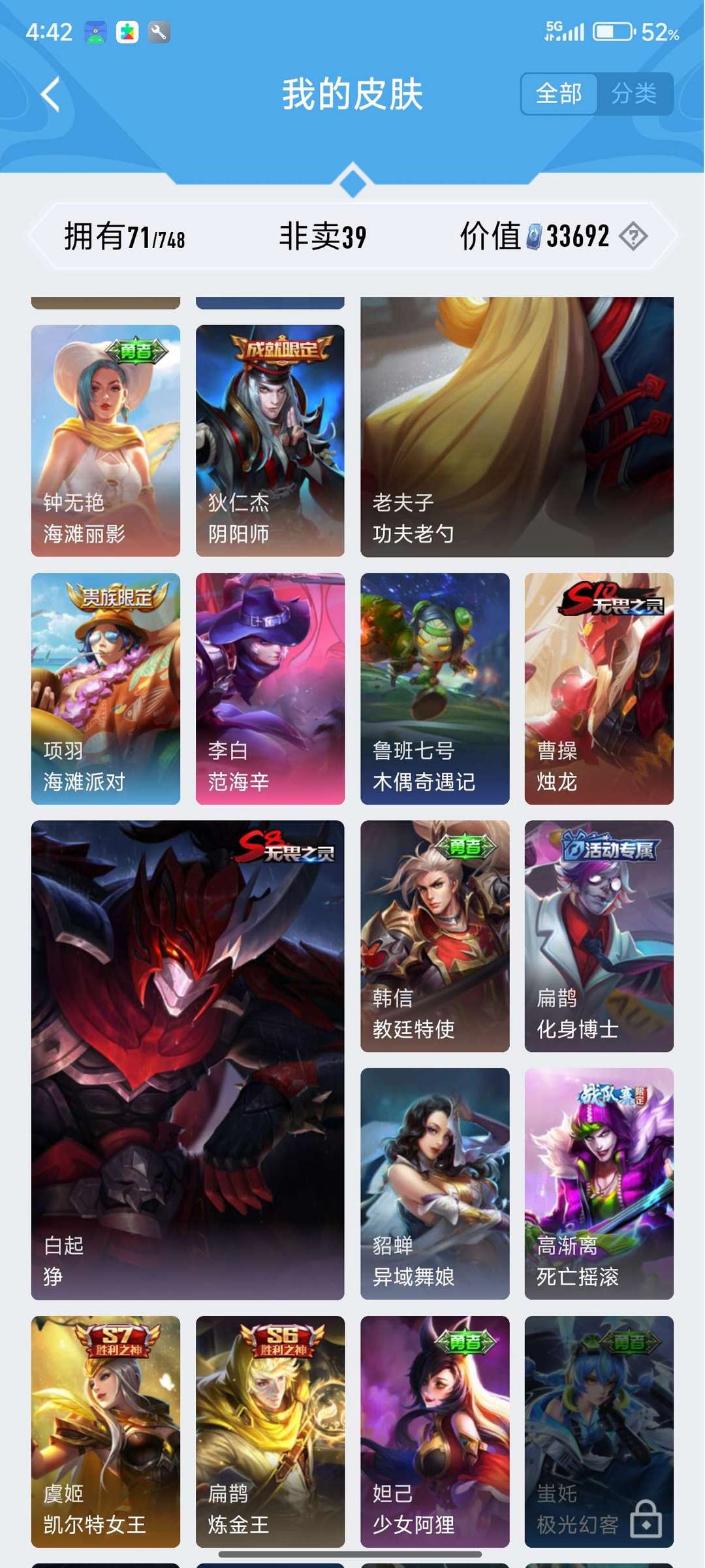 可以打排位赛,老号,有很多赛季皮肤,都是很久之前的了炼金王那些