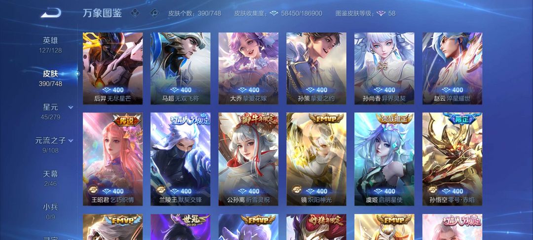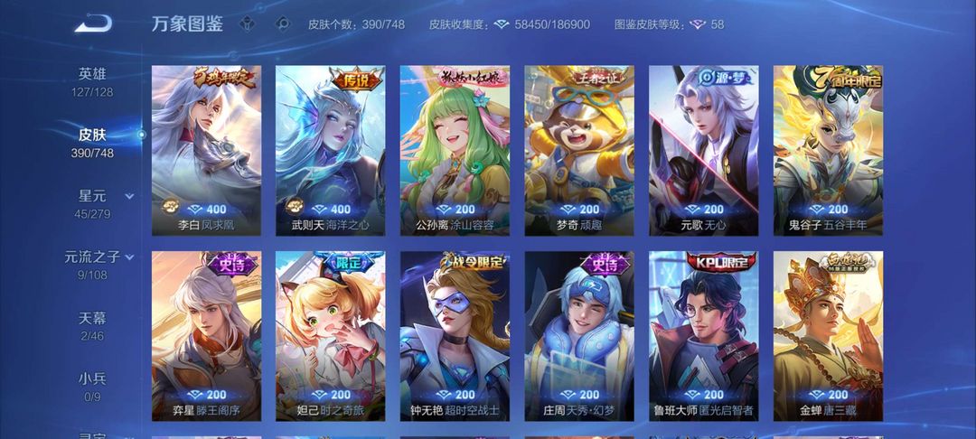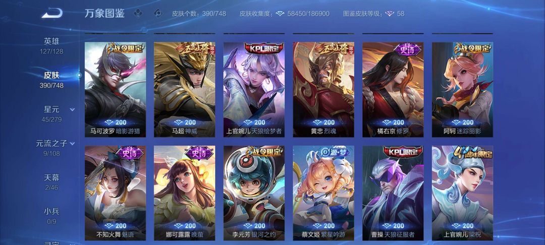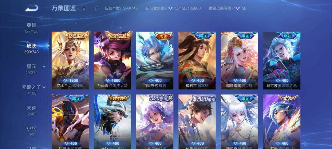 俩个典藏花木兰和孙尚香 历史鬼谷子 星耀1段位 全铭文 127英雄 300+皮 贵9