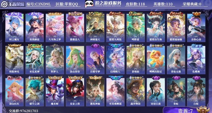 稀有皮肤:3段位:星耀四铭文等级126英雄100多个