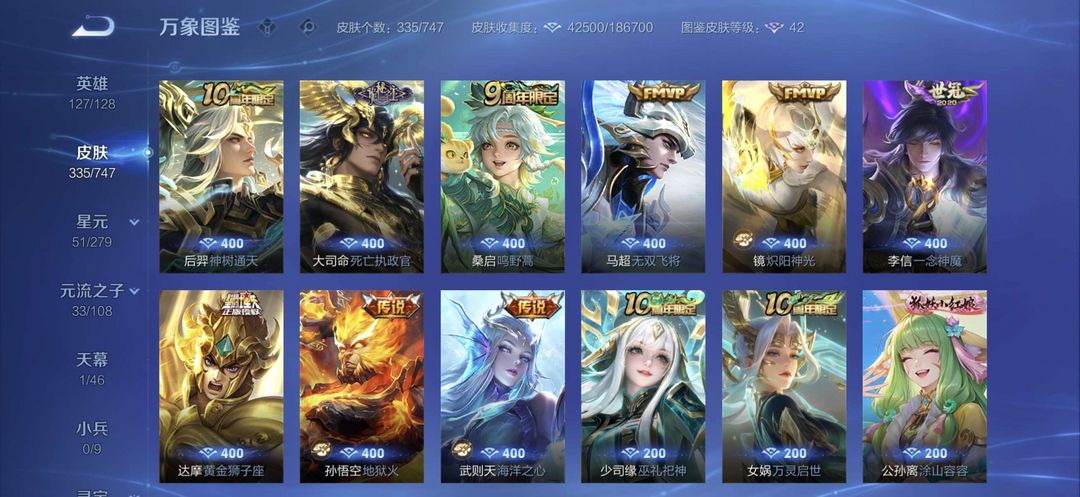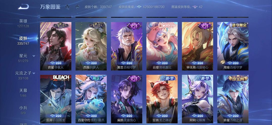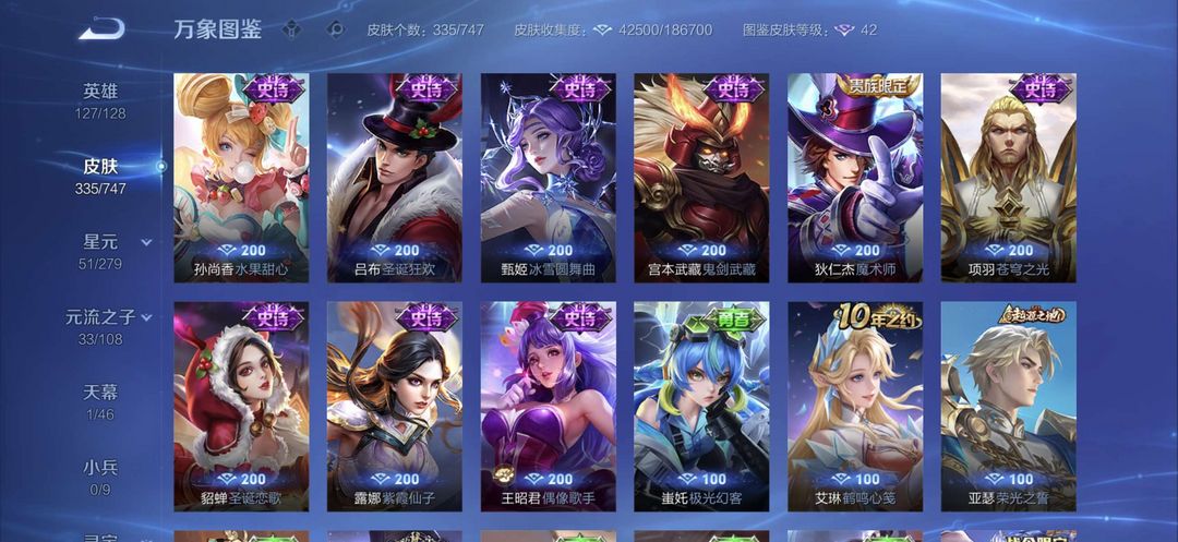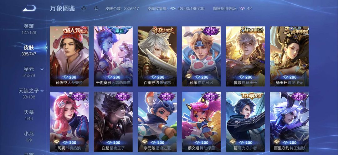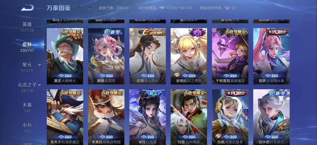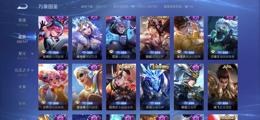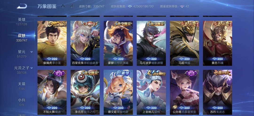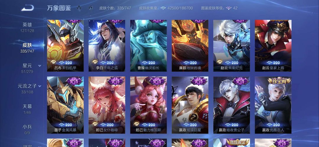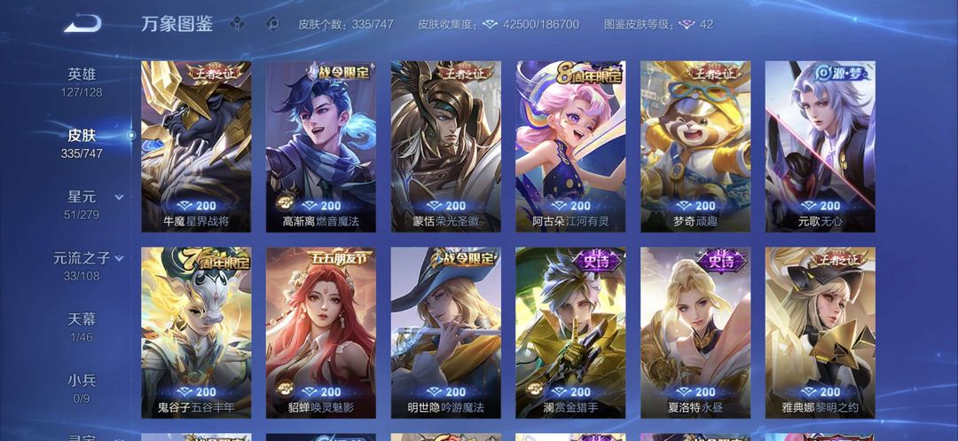 V7-绝世王者满符文,基本每个英雄都有皮肤有