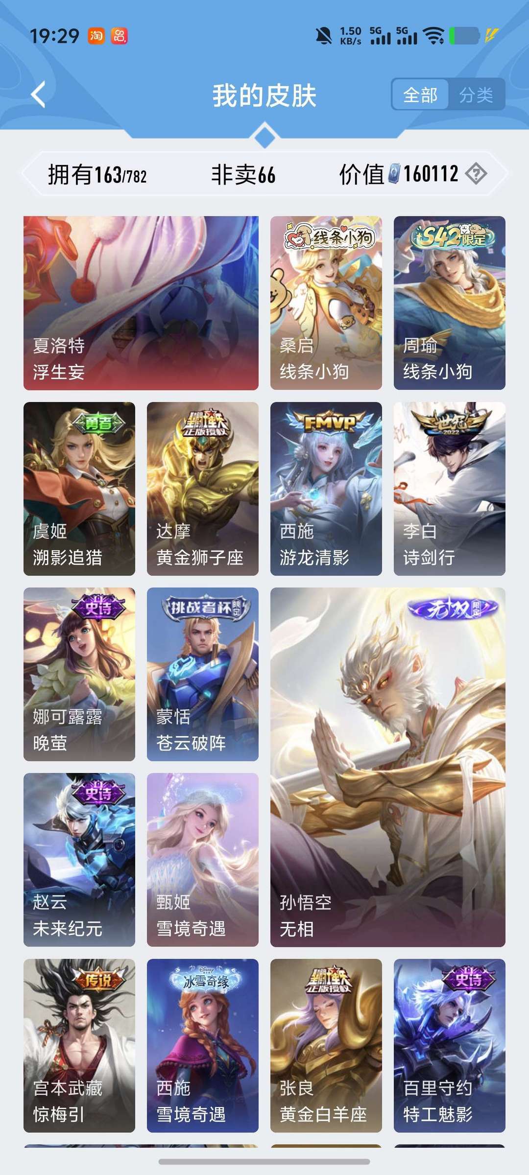 猴子无双和甄姬冰雪(孙悟空无相)全套马年伽罗和嫦娥新皮肤李信无双耀无双韩信新品盘古充值