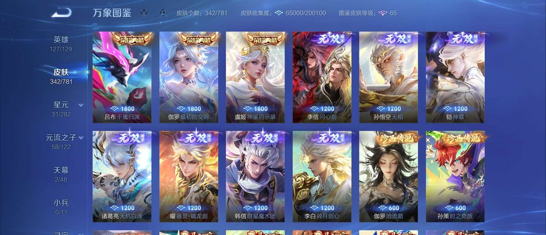 李信无双马年限定全7无双*问心剑,无相,天机白泽,碎月剑心,璃龙剑,神罪,群星魔术团,3水晶,3珍品