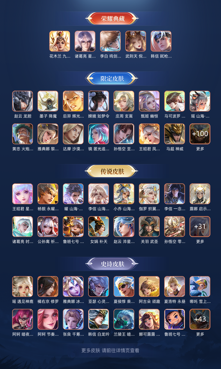 652个皮肤,段位王者,v10,8无双,5典藏,号上面有妹子,带妹可以