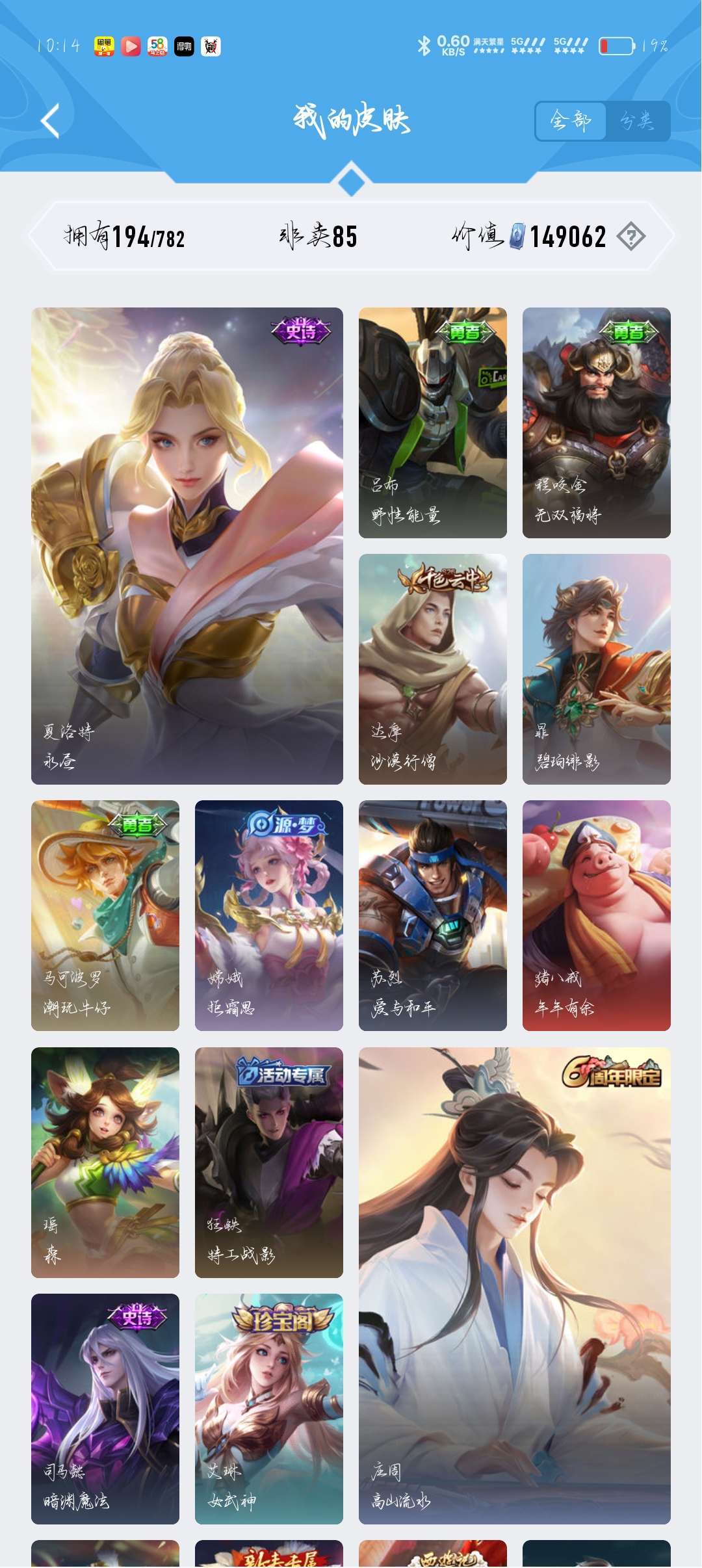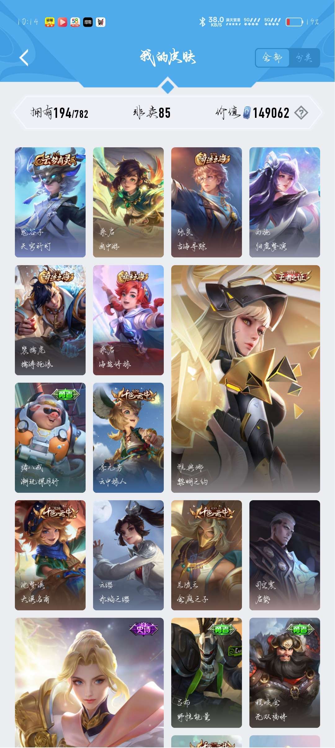 王者荣耀v8 190多个皮肤,喜欢该账号的,可以点击收藏,收藏一下,请勿挂机,挂机必拉黑。
