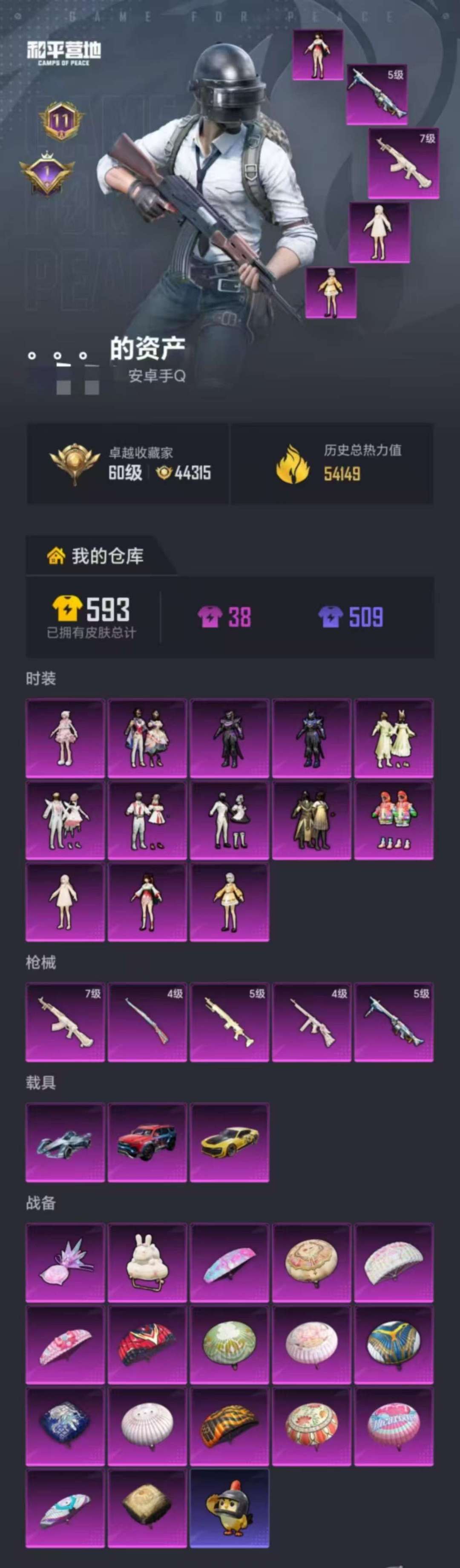 贵族等级无,段位永恒钻石,英雄数量125,典藏皮肤数0,皮肤数量164,白虎志/炽阳神光/白虎志/炽阳神光